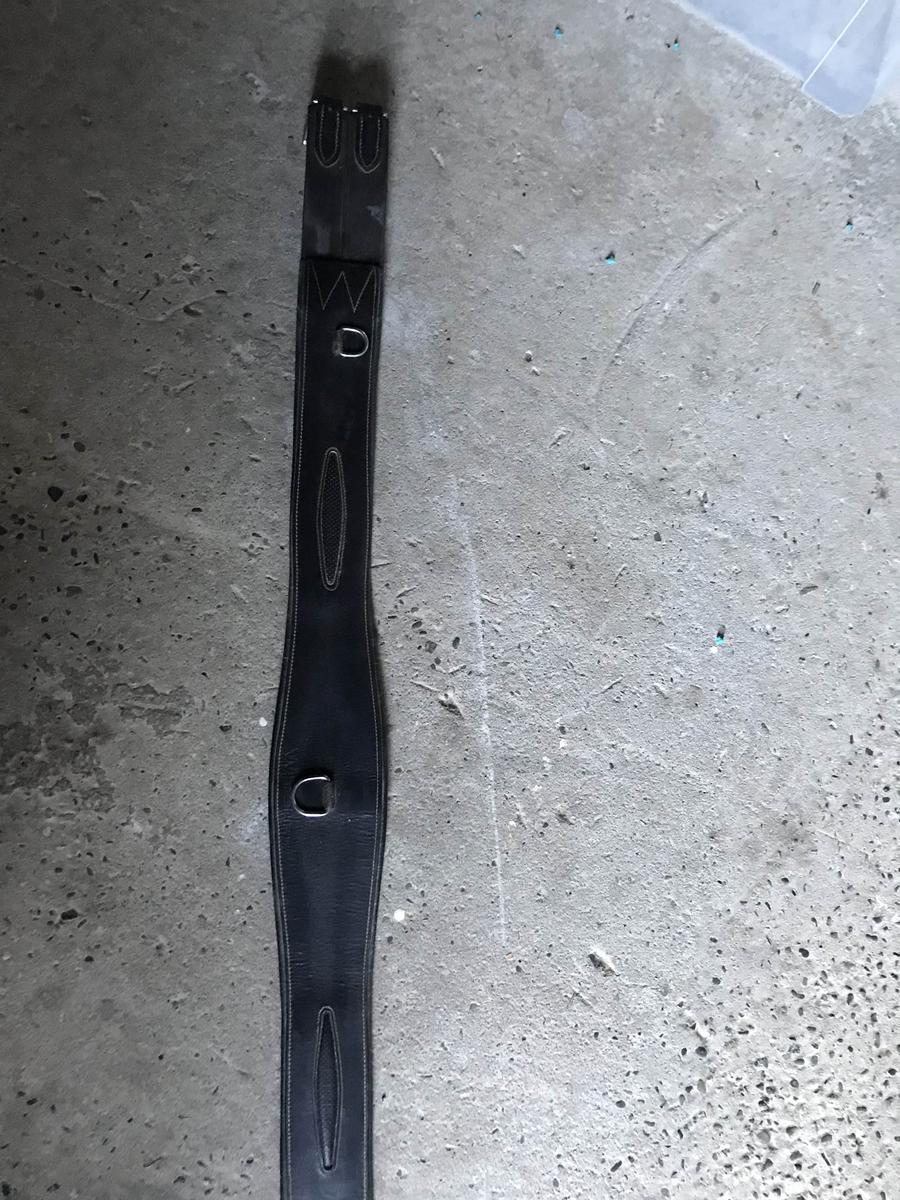 sangle en cuir noir de la marque Whitaker taille 145cm. Avec un cuir bien moelleux sur la partie en contact avec le cheval.