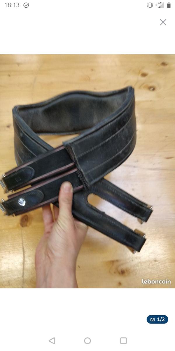sangle en cuir de 125cm avec un élastique d'un côté. Peu utilisé, pas nettoyé sur la photo mais en très bon état, l'élastique n'est pas distendu (voir photo)