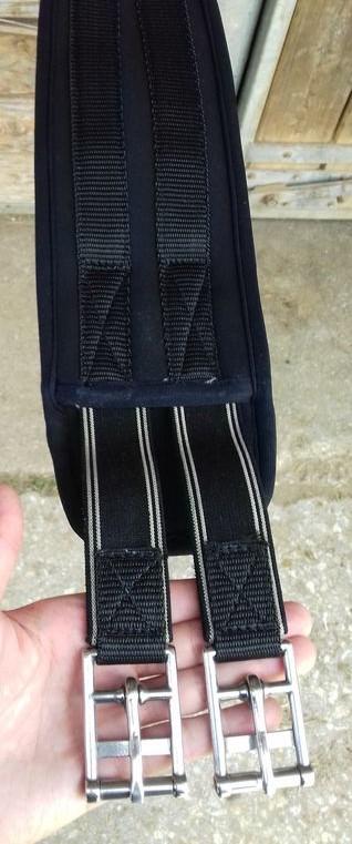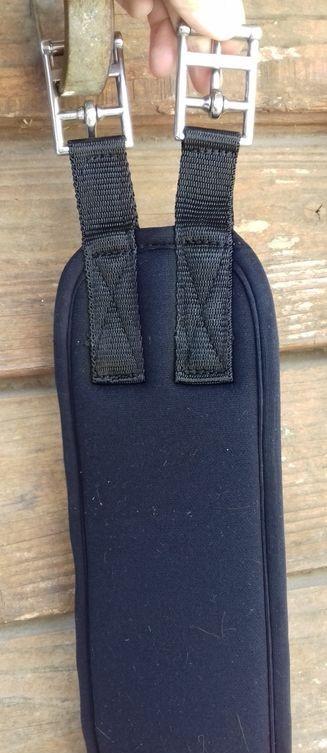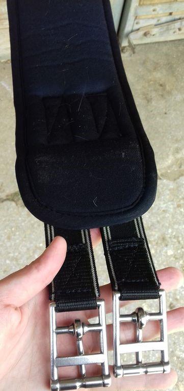Sangle en mousse à mémoire de forme douce et absorbant les chocs, qui cède sous la pression puis revient à sa position initiale. Coupe anatomique avec large surface de contact et anneau central en D pour fixer facilement un enrênement. Avec inserts élastiques d'un côté et fixes de l'autre. Boucles à rouleaux en acier inoxydable.