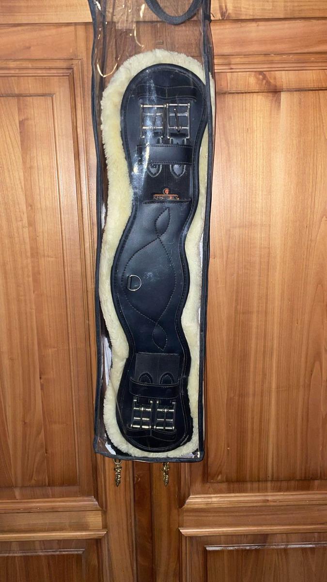 sangle de dressage cuir Kentucky état neuf cause de la Vente est devenu trop petite pour mon cheval qui a du poids.vendu avec un fourreau noire de rechange jamais porté