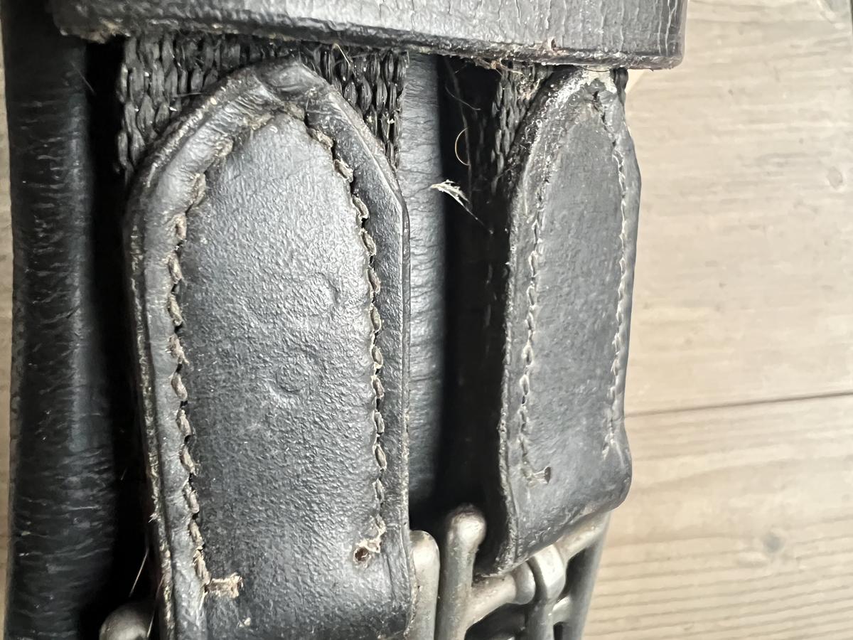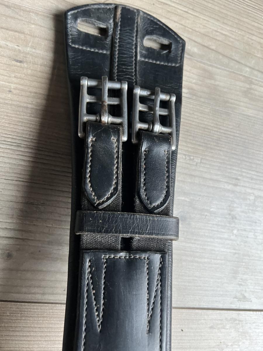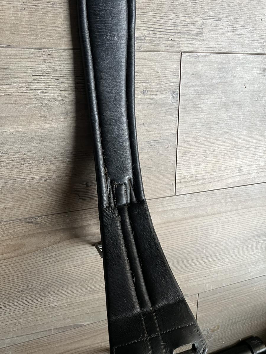Vends sangle courte cuir noir de buffle taille 80cm pour selle de dressage.