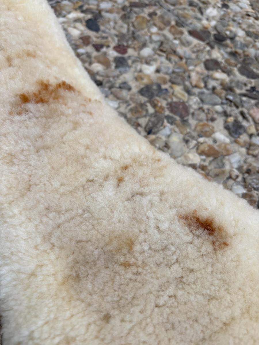 Comme visible sur les photos le mouton est taché (non visible quand la sangle est portée) mais pas abîmé