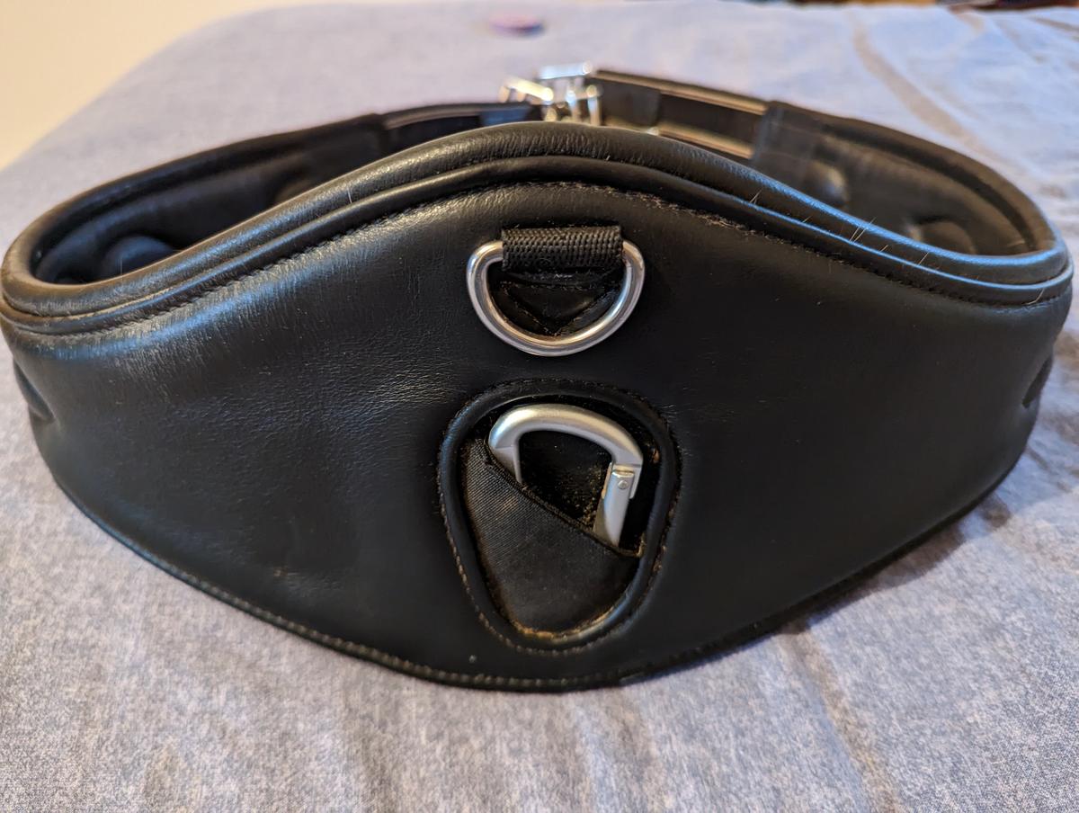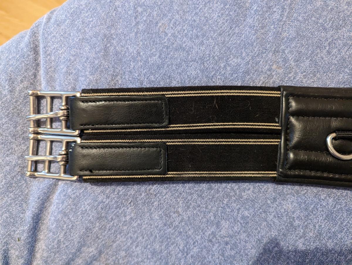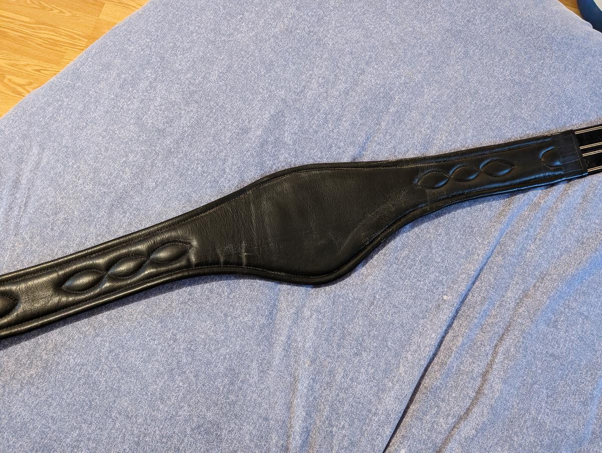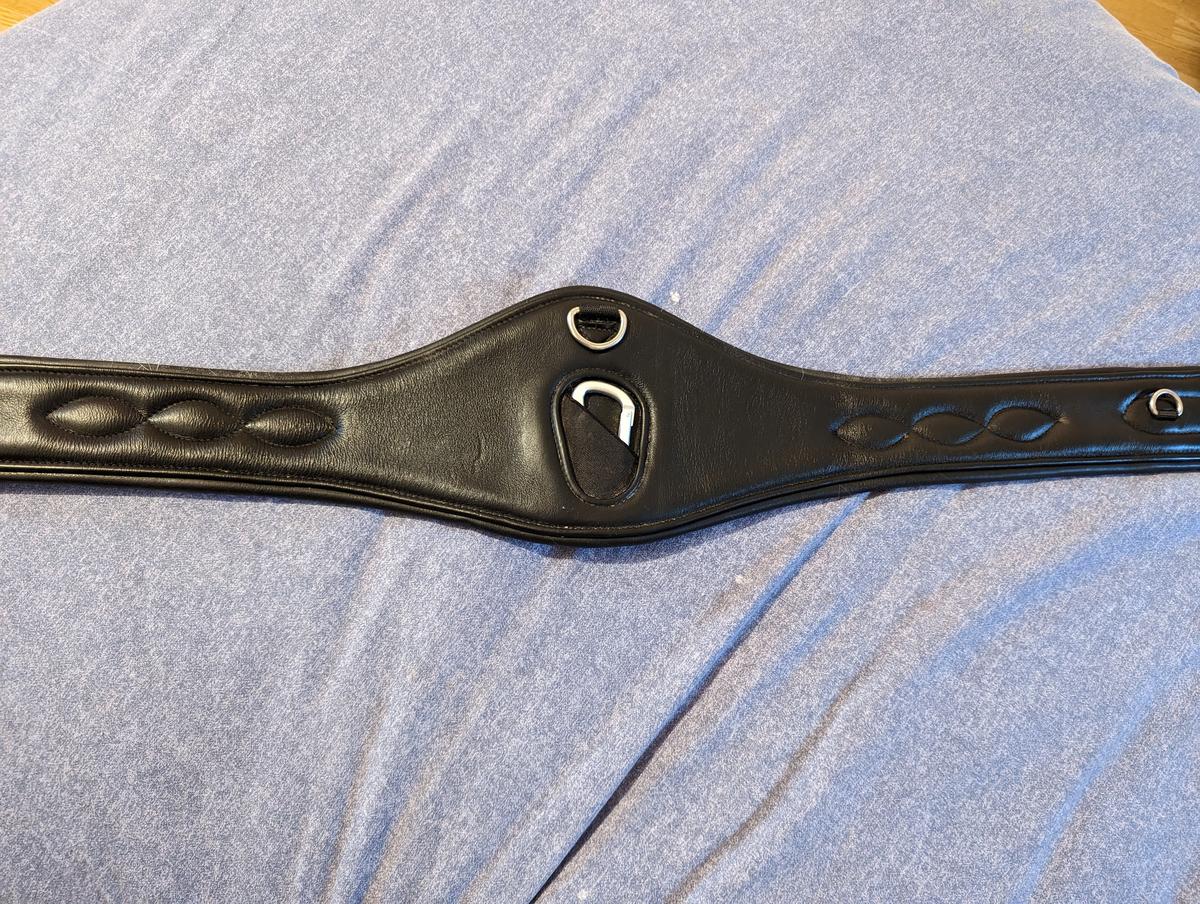Sangle cuir noire très peu servi, comme neuve. Elle est en 135cm trop grande pour mon cheval.