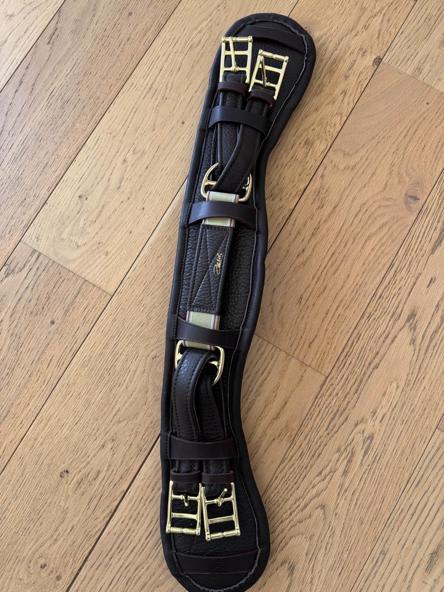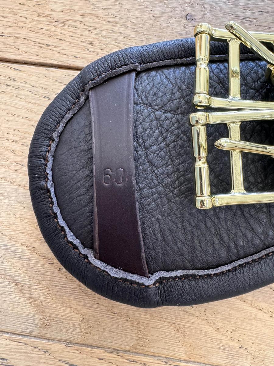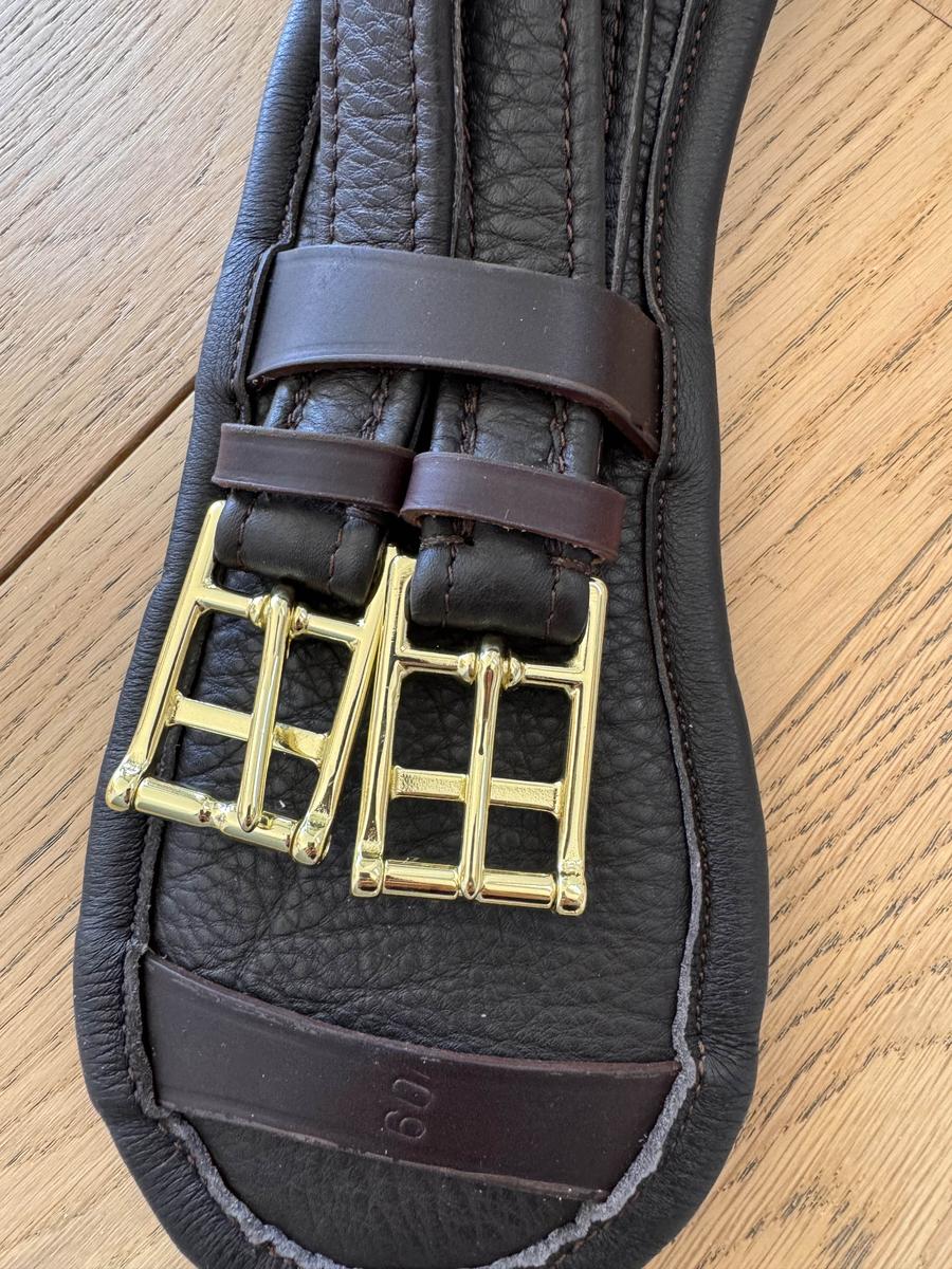 Sangle en taille 60 cm de couleur marron, neuve n’a jamais été portée ni essayée. C’est une erreur de taille ainsi que de couleur pour aller avec ma selle et la sellerie refuse de la reprendre.