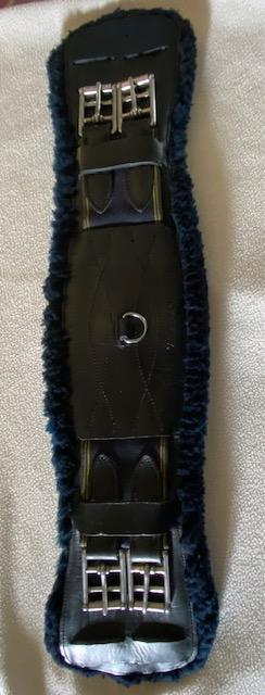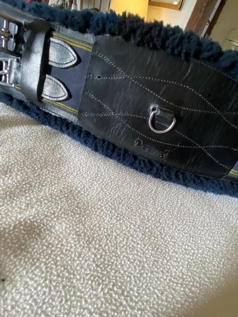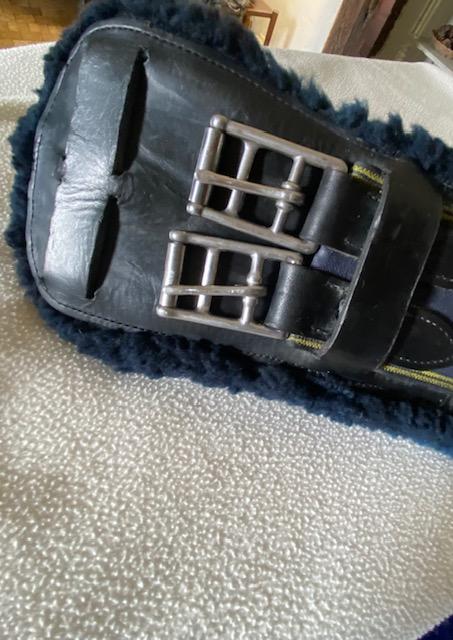 Je vend une sangle Darroze en cuir noir et mouton véritable noir. faite par un sellier français, en parfait état. taille : 65cm