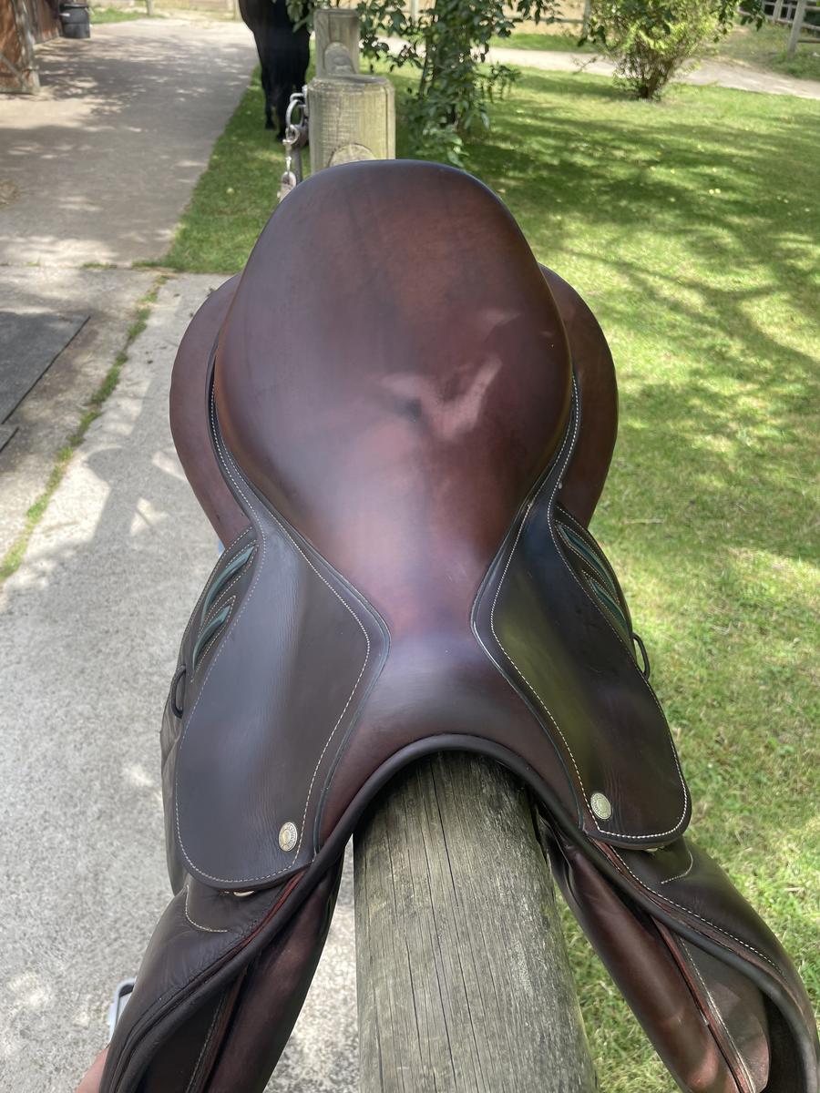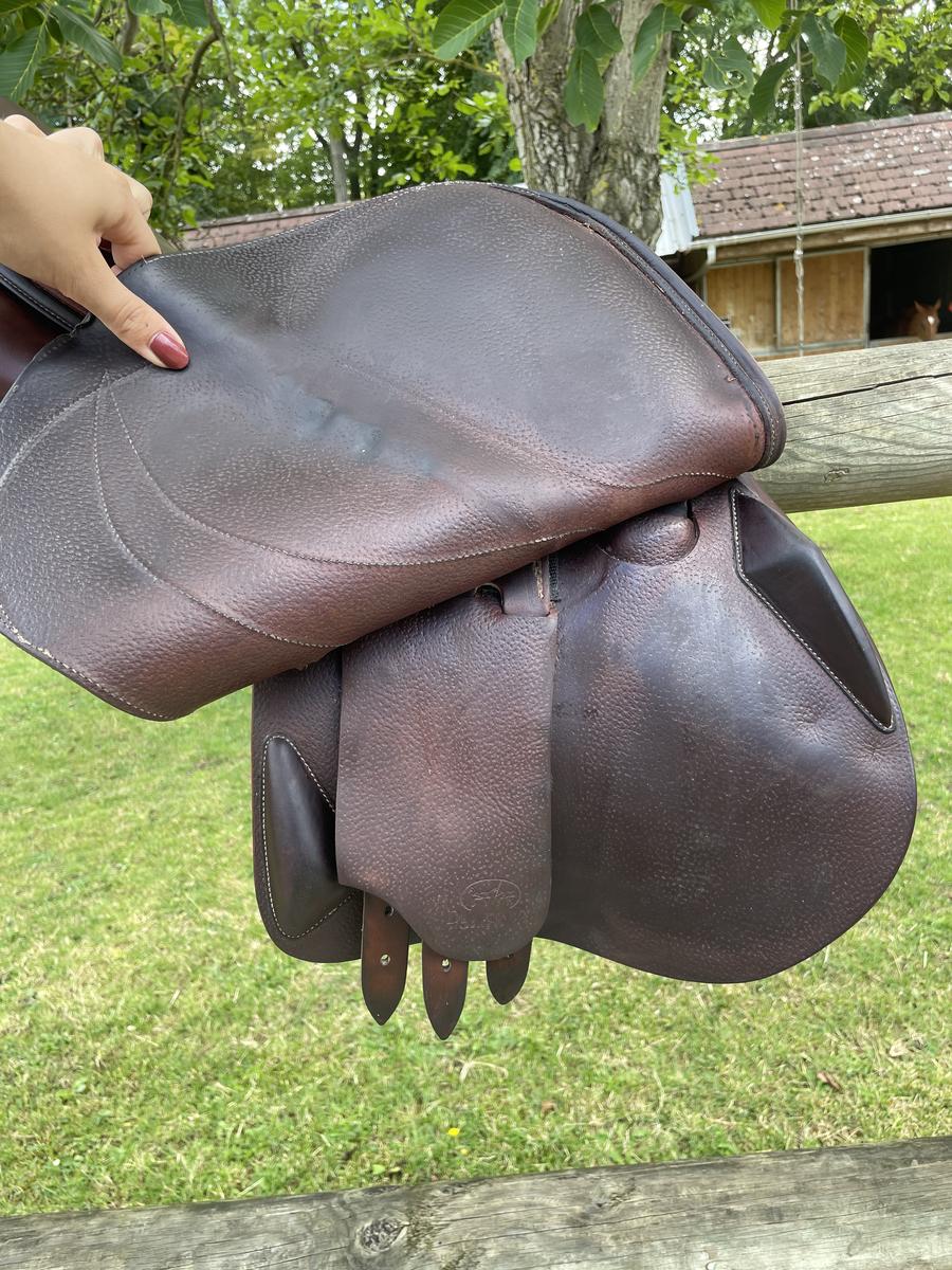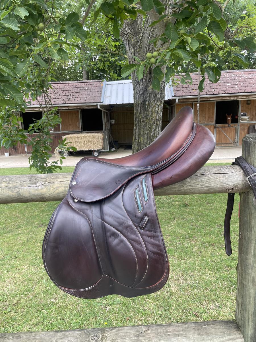 Bonjour, Suite au départ à la retraite de mon cheval je me sépare de ma selle Devoucoux Biarritz Lab, taille 18, quartiers 3 AA. Doublée veau, cuir en excellent état toujours très bien entretenu. Option mousse D3D pour le comfort des chevaux, arcade normale. Valeur équipée neuve : 5000€ Vendue avec bavette devoucoux en taille 140 N’hésitez pas si vous avez besoin de plus d’informations, essais possibles Nord et Ouest parisien. Pas de prêt de selle pour essai moyen terme.