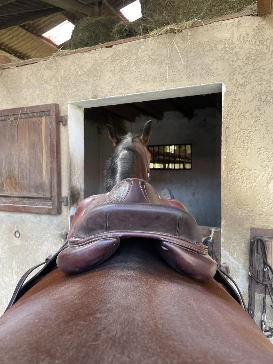 Axée saut mais son siège semi-creux permet un très bon maintien sur le plat.