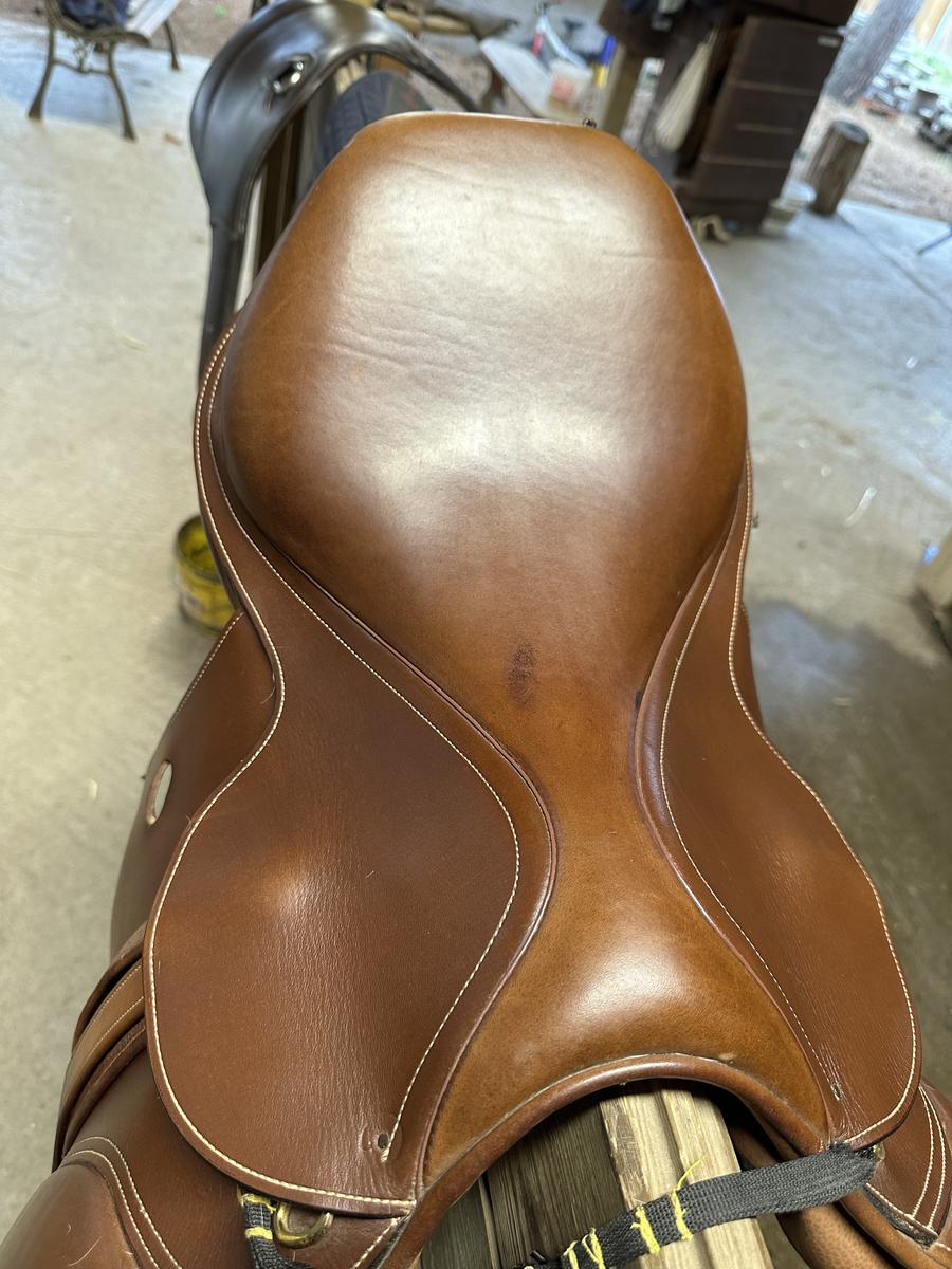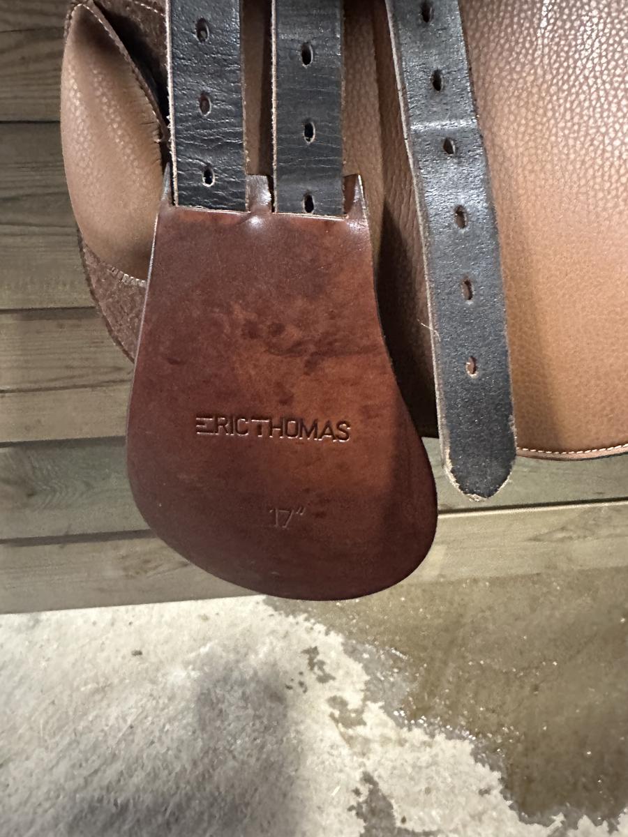 Selle éric thomas à vendre. Achetée pour noël en 2019, elle a très bien vieillie car toujours bien entretenue. Taille 17