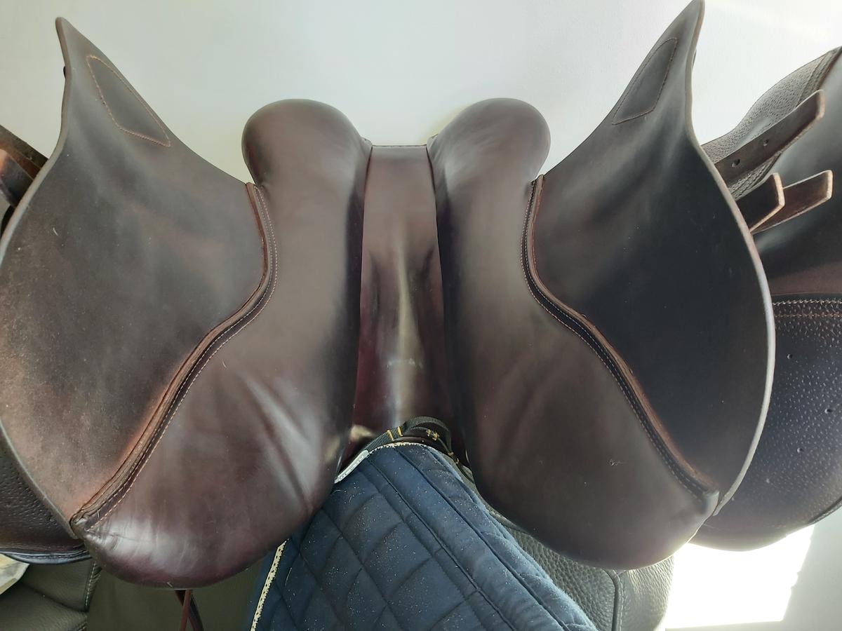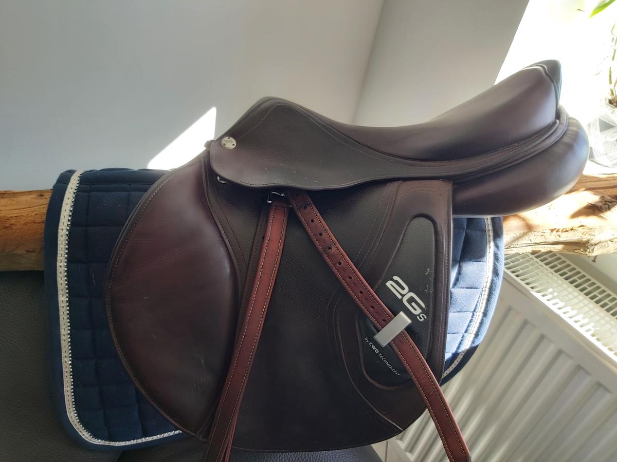 Vends selle CWD 17.5, 2C, siège semi creux. Toujours bien entretenue. Aucune griffure, juste les traces des étrivieres. Je la vends car elle ne correspond pas à mon nouveau cheval. Des étrivières neuves CWD sont données avec la selle. Une sangle bavette peut être aussi mise dans le lot. Essayage possible en Rhône Alpes. Possibilité de vous livrer la selle à Equita