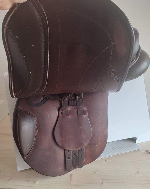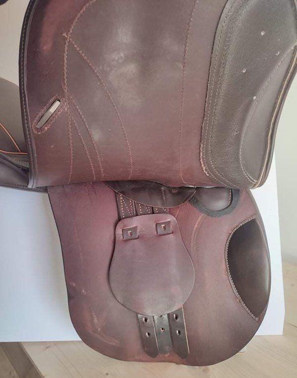 Vends très jolie selle obstacle taille 17,5 pouces, double quartier, en parfait état, de la marque sellier Baude.