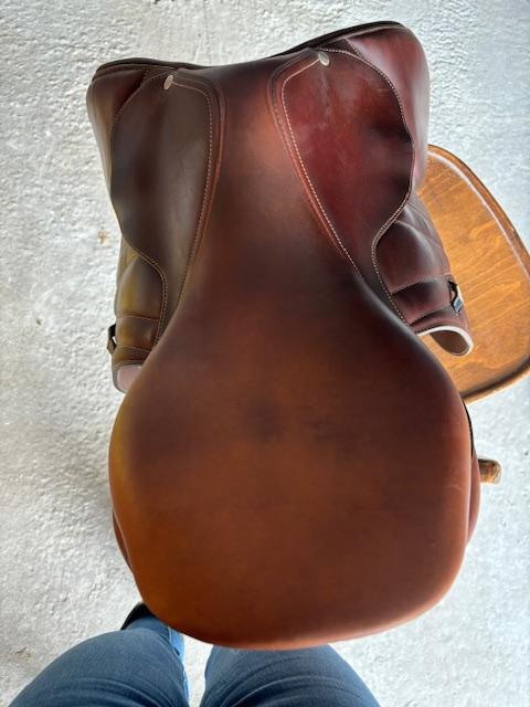 Selle Butet 18' de 2018, doublé veau, siège semi-plat. Liseré noir mat. en très bon état, toujours bien entretenue.