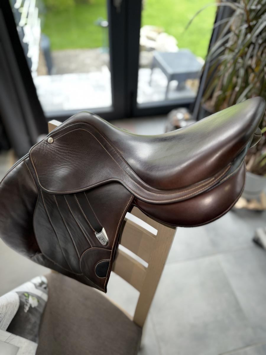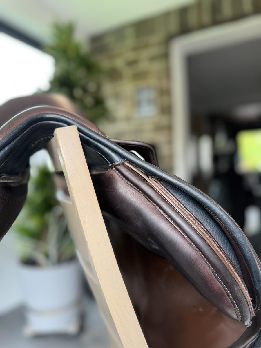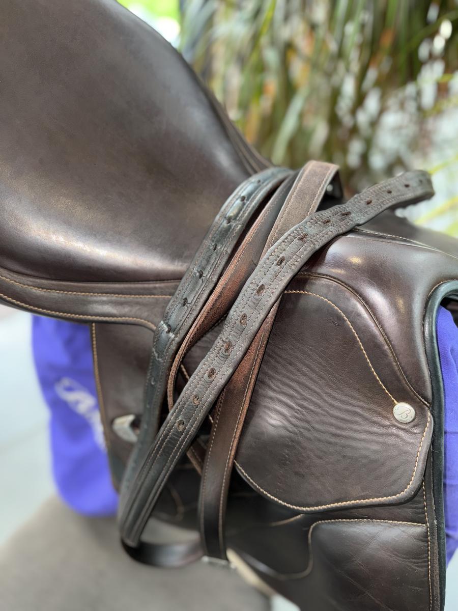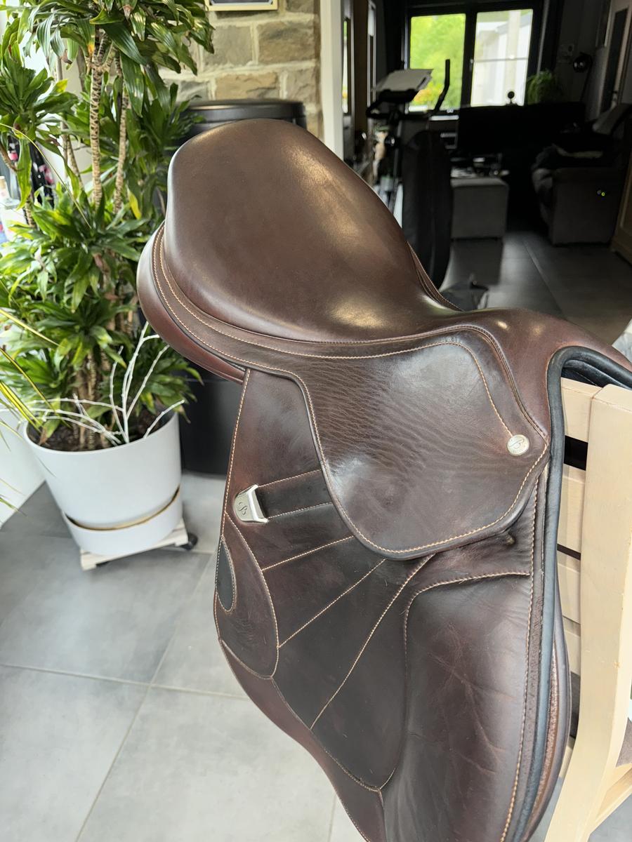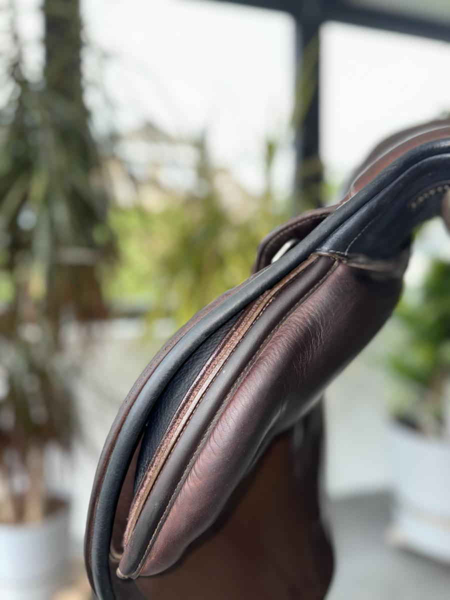 Selle bâtes victrix cair luxe brune liserer bleu de 2020 taille 17” 1 er main facture disponible, vendue avec étrivière assortie et housse de protection, la selle est entièrement adaptable, système cair pour plus de confort, la plaque est également changeable.