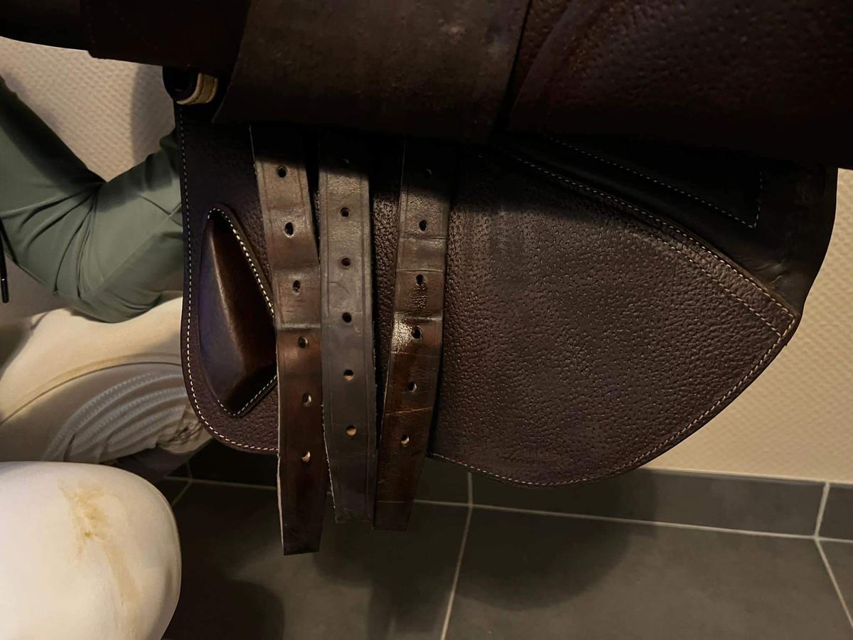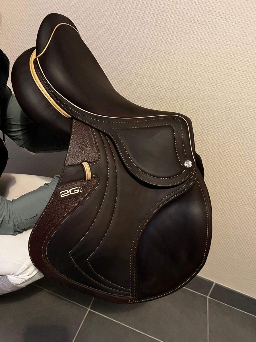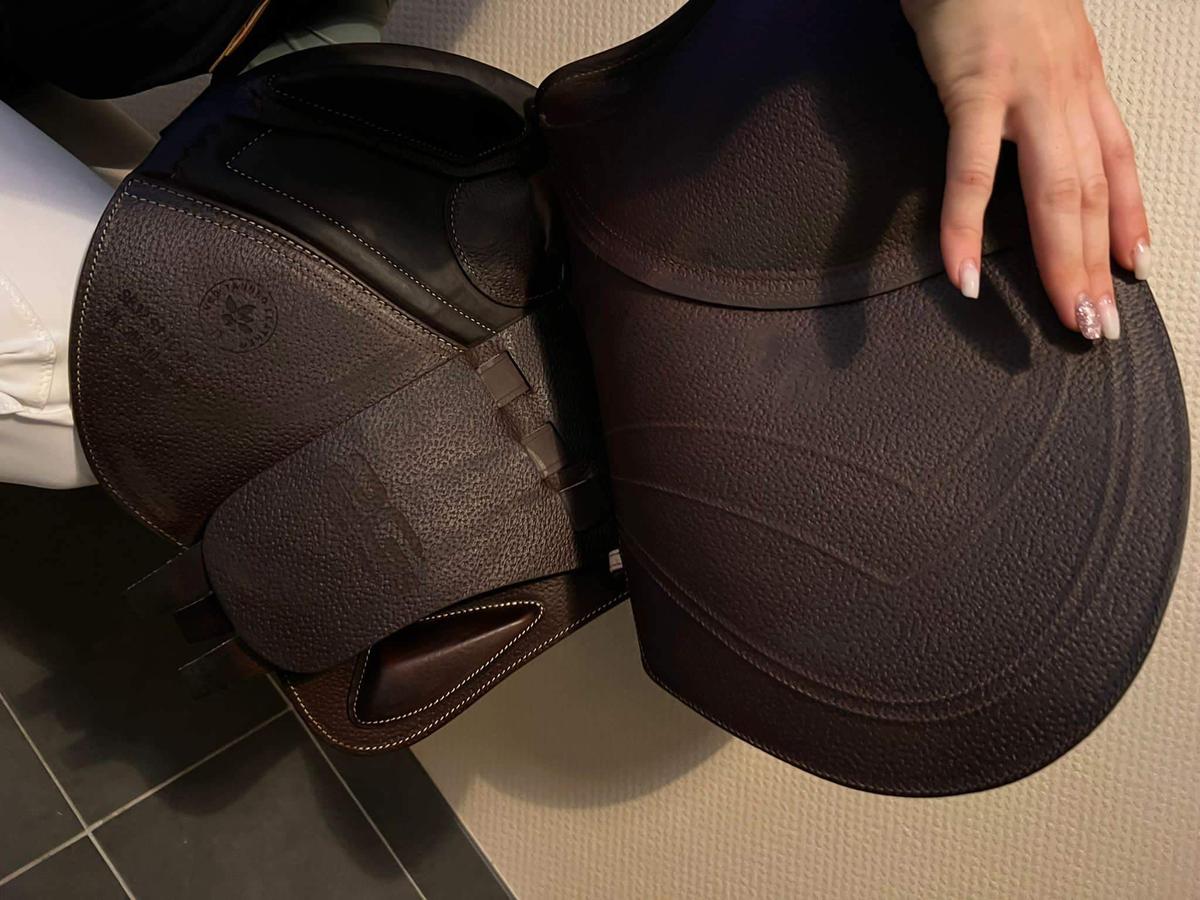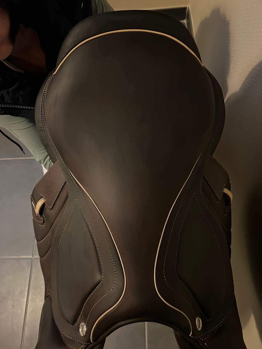 Pour mémoire, cette selle est dotée d'un arçon en carbone Kevlar, qui permet d'éviter les pressions sur le garot et qui permet également, de part l'ouverture de celui-ci, de suivre les mouvements du dos cheval et d'offrir une meilleure répartition des pressions. Il libère donc le dos du cheval lors des sauts.
