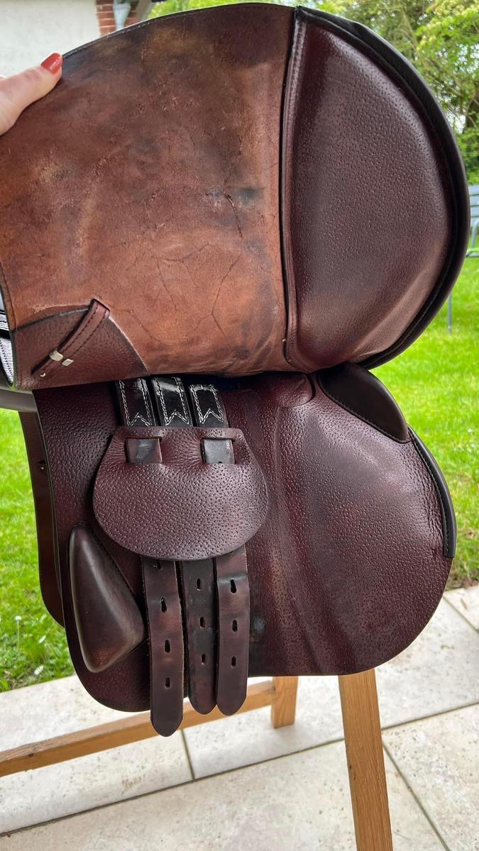 La selle n’a pas beaucoup servi en 2 ans. Je m’en suis servie uniquement en concours. Elle a été nettoyée et entretenue très régulièrement.