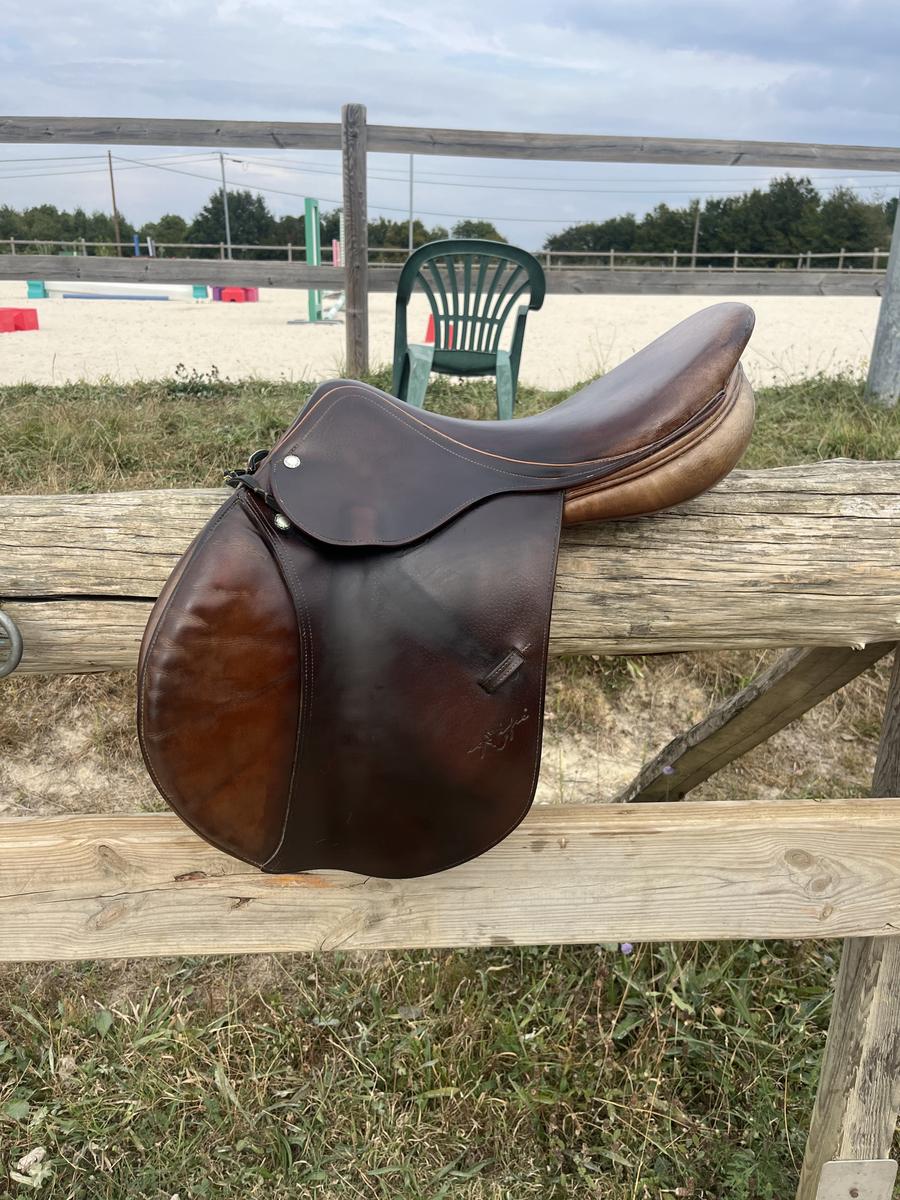 Cette selle orientée obstacle est très confortable. Elle a toujours été correctement entretenu et est donc en très bon état quelques traces d’usures classiques sont visibles (voir les photos)