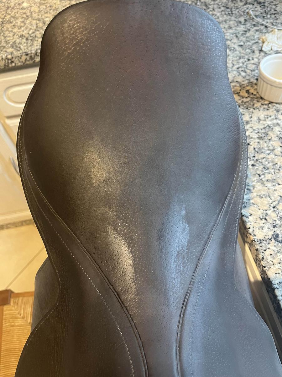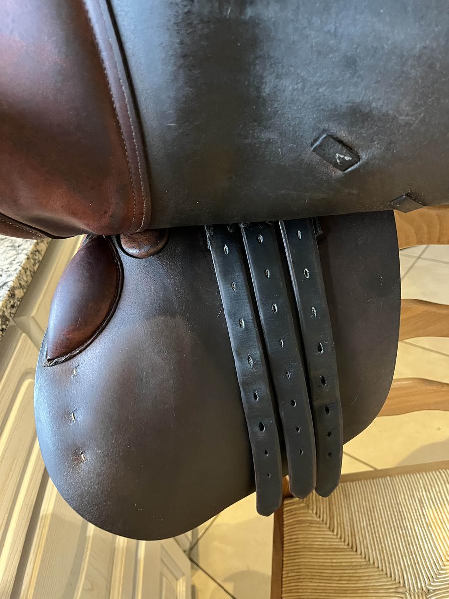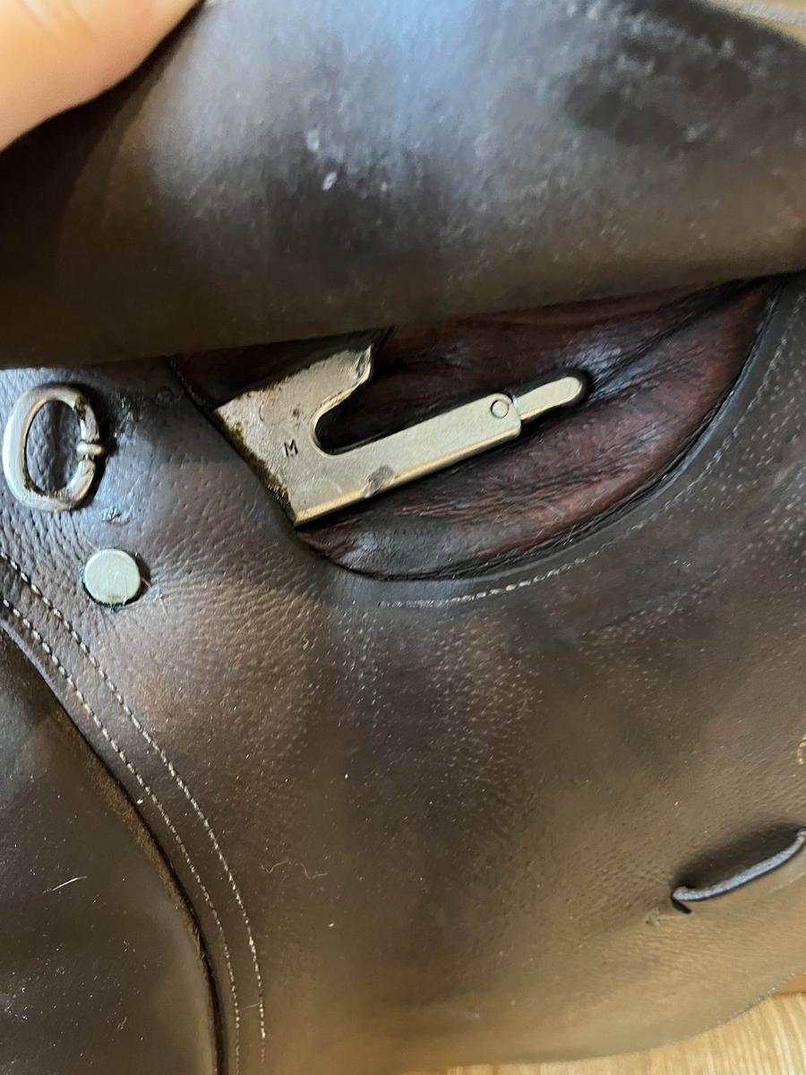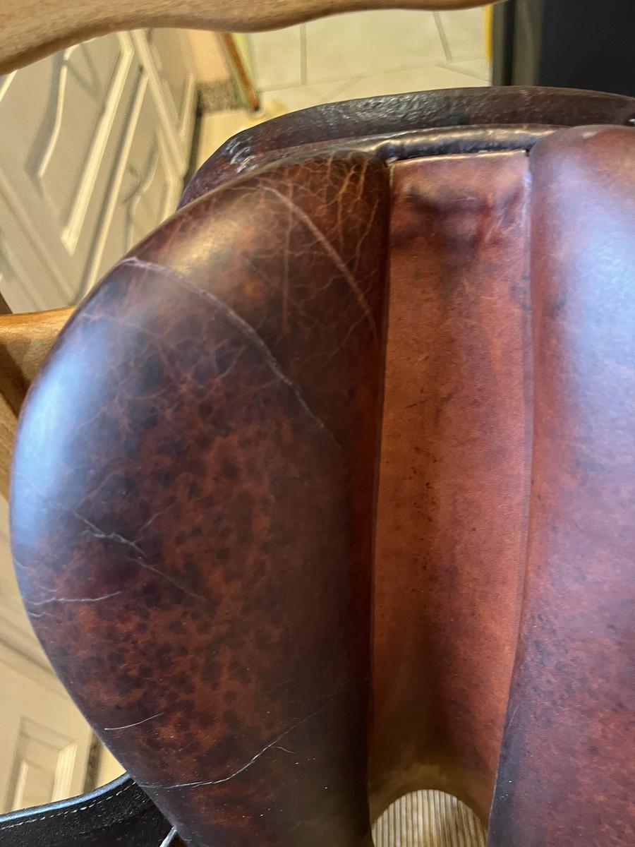 usure sur le siège légère craquelures et usure normale (selle porté 6j/7 sur différent chevaux), ainsi que sur une matelassure(voir photo)