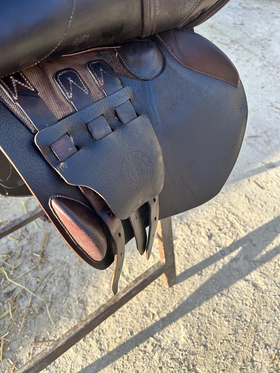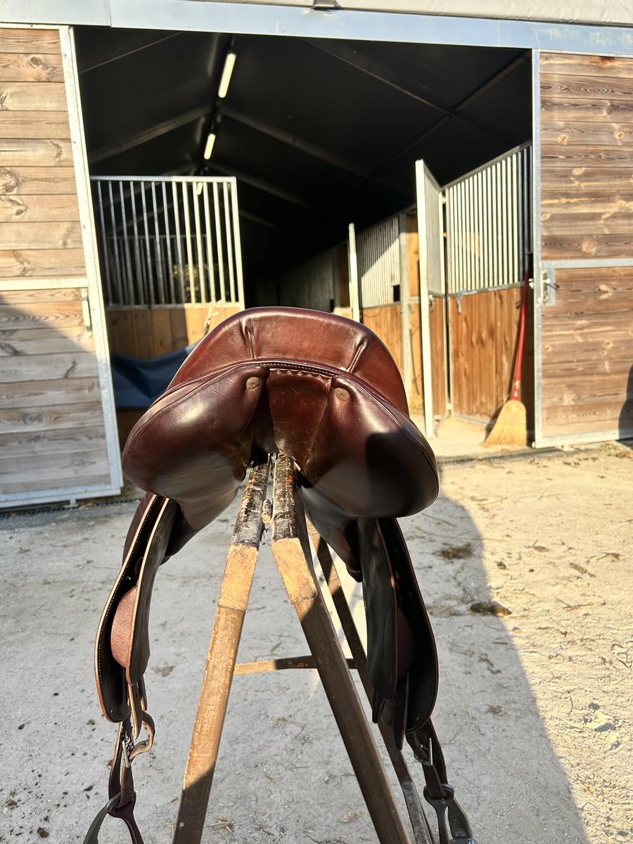 Selle Arion jumping taille 17,5 quartier 3C de 2022 extrêmement bien entretenue, état quasi neuf . Adaptée à un cheval d’1m68 , matelassure articulée pour dégager le mouvement des épaules . Vendue avec étrivières plates Arion , achetée 4500€.