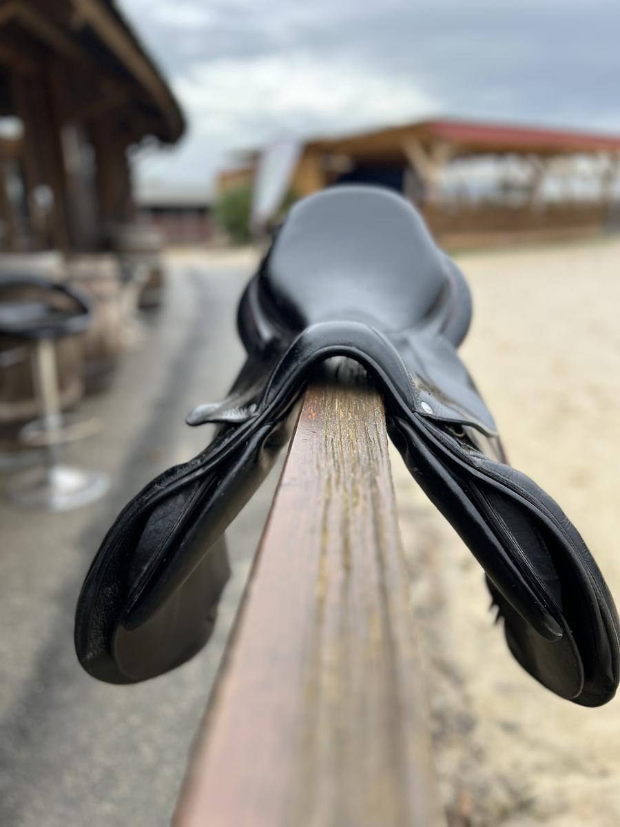 Selle acheté d’occasion il y a 2 ans, facture à l’appuie. Toujours bien entretenue. Taille 17,5 en cuir noir avec détails en cuir rouge. Situé en haute Savoie vers Sciez, essai possible dans les alentours haute Savoie/geneve.