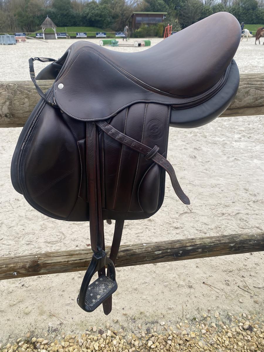 Vendue avec sangle bavette Forestier (50cm) et sangle bavette Kentucky mouton (65cm) / Étrivières Mark Todd taille S / Housse de selle