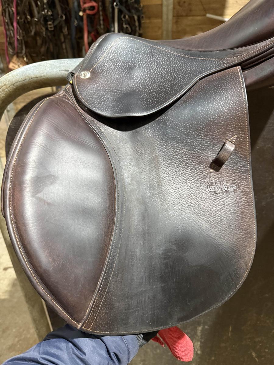 Selle CWD SE03 taille 17 pouces quartiers 2L accroc voir photos. Plus d’infos en mp négociable