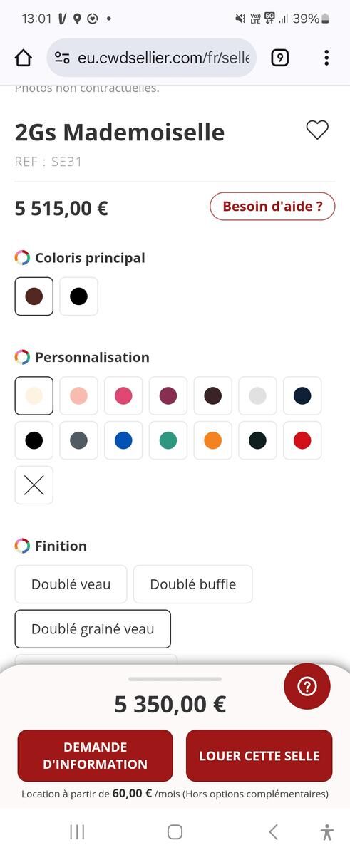 Selle CWD modèle mademoiselle liseret beigedoublé grainé veau (cuir plus résistant).