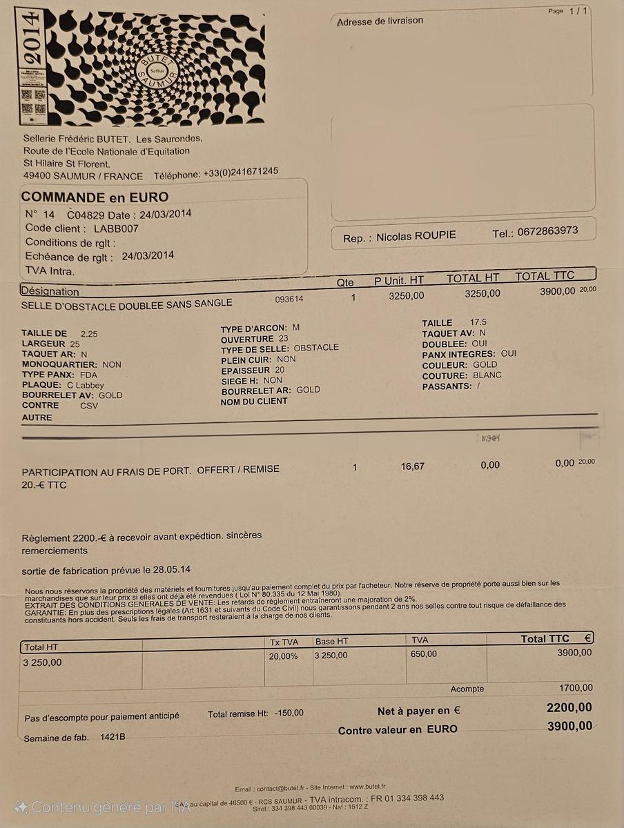Sera vendue avec des étrivières butet NEUVES, non déballées.