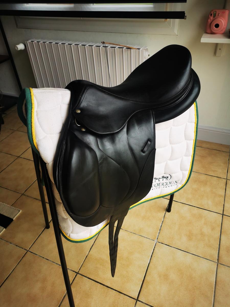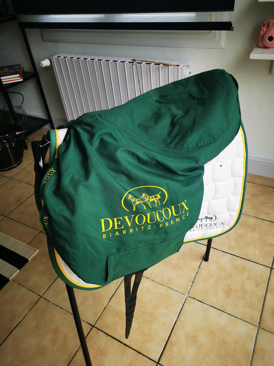 Selle Devoucoux Chiberta 0, 17.5 pouces, arcade normale avec sa protection Devoucoux.