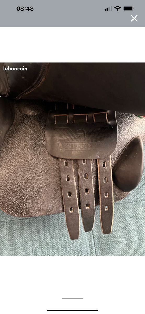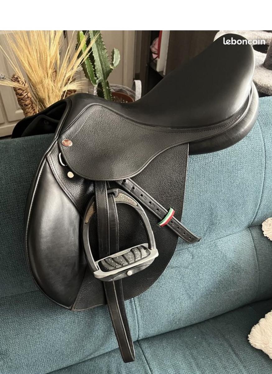 Selle supreme taille 17’’ en cuir en parfait état utilisée une dizaine de fois et très bien entretenue avec ses étrivières et sa housse .