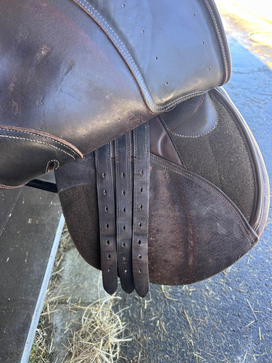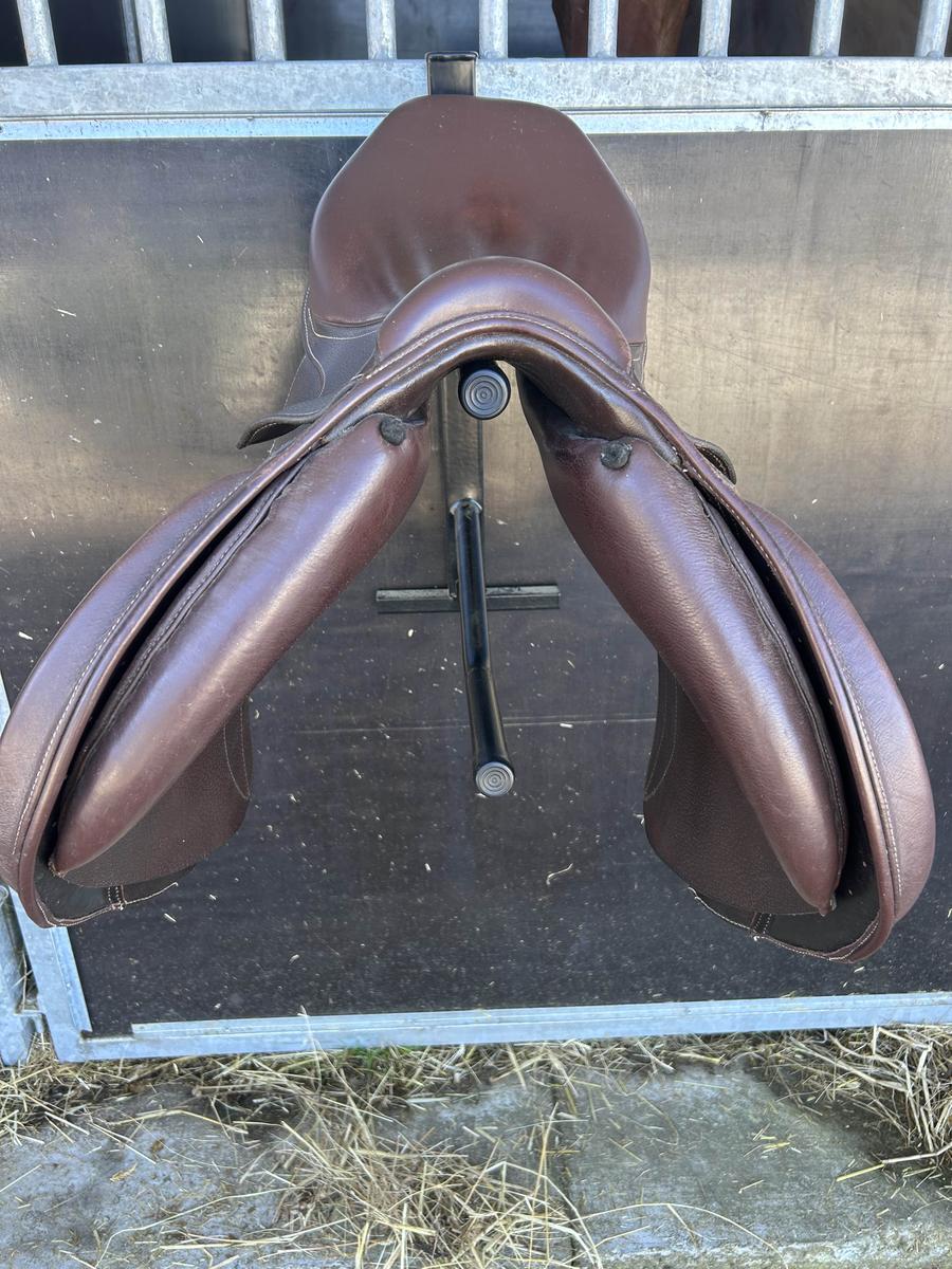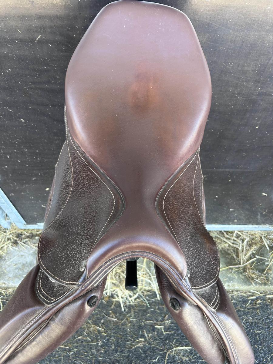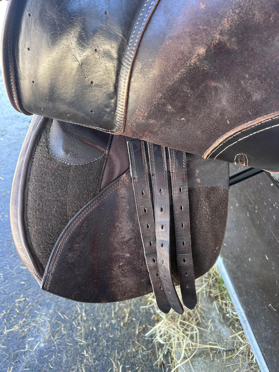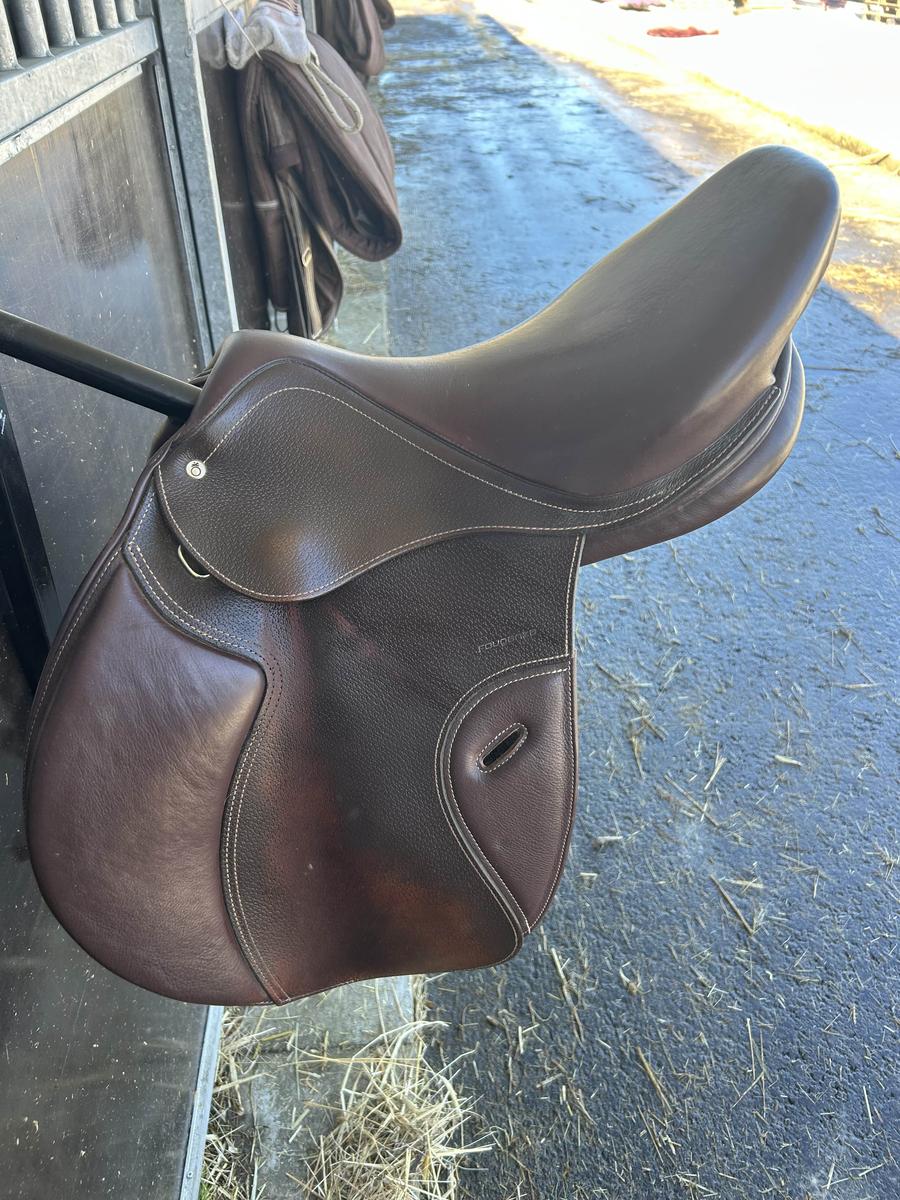 Selle de la Fouganza, utilisée quelques fois, mais toujours bien entretenue, selle Deep avec beaucoup de soutien au niveau des genoux, les seules marques d'utilisation se trouvent au niveau des quartiers