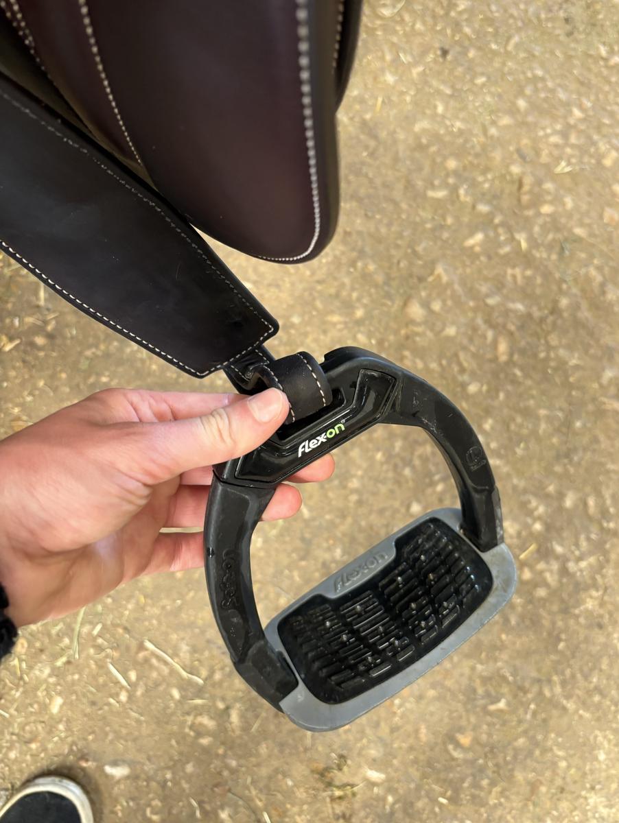 Vendu équipée des étrivières plates Butet et des étriers Flex-On Safe inclinés