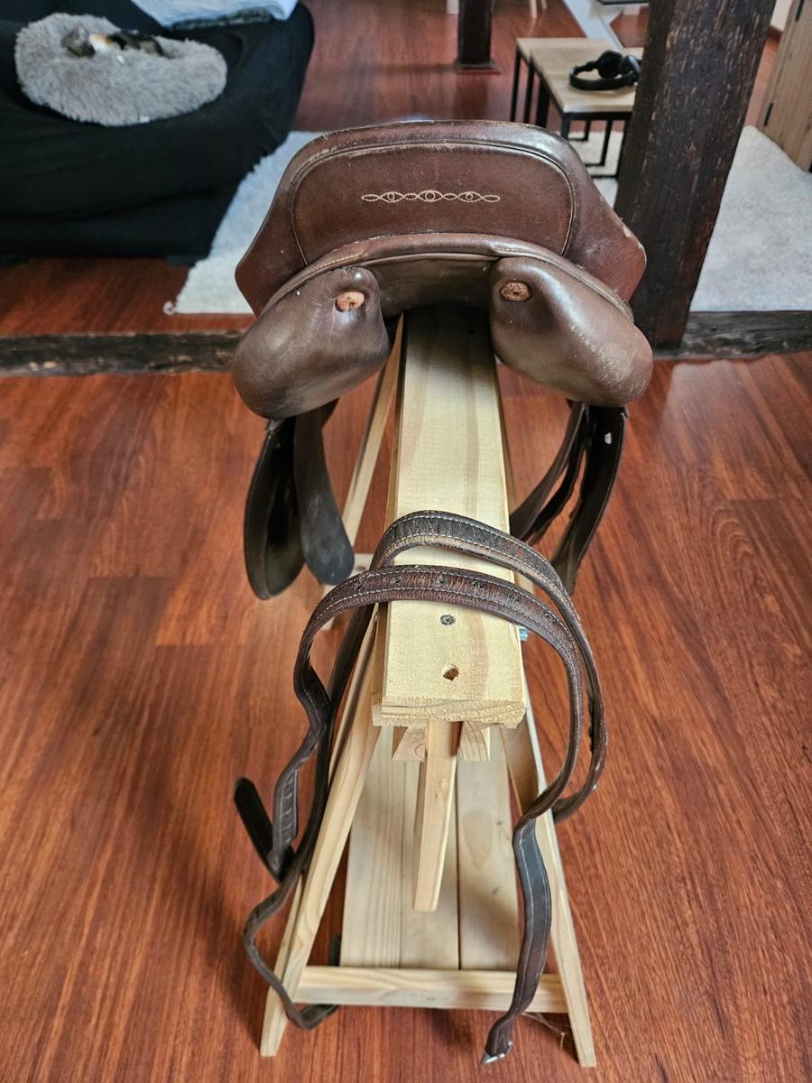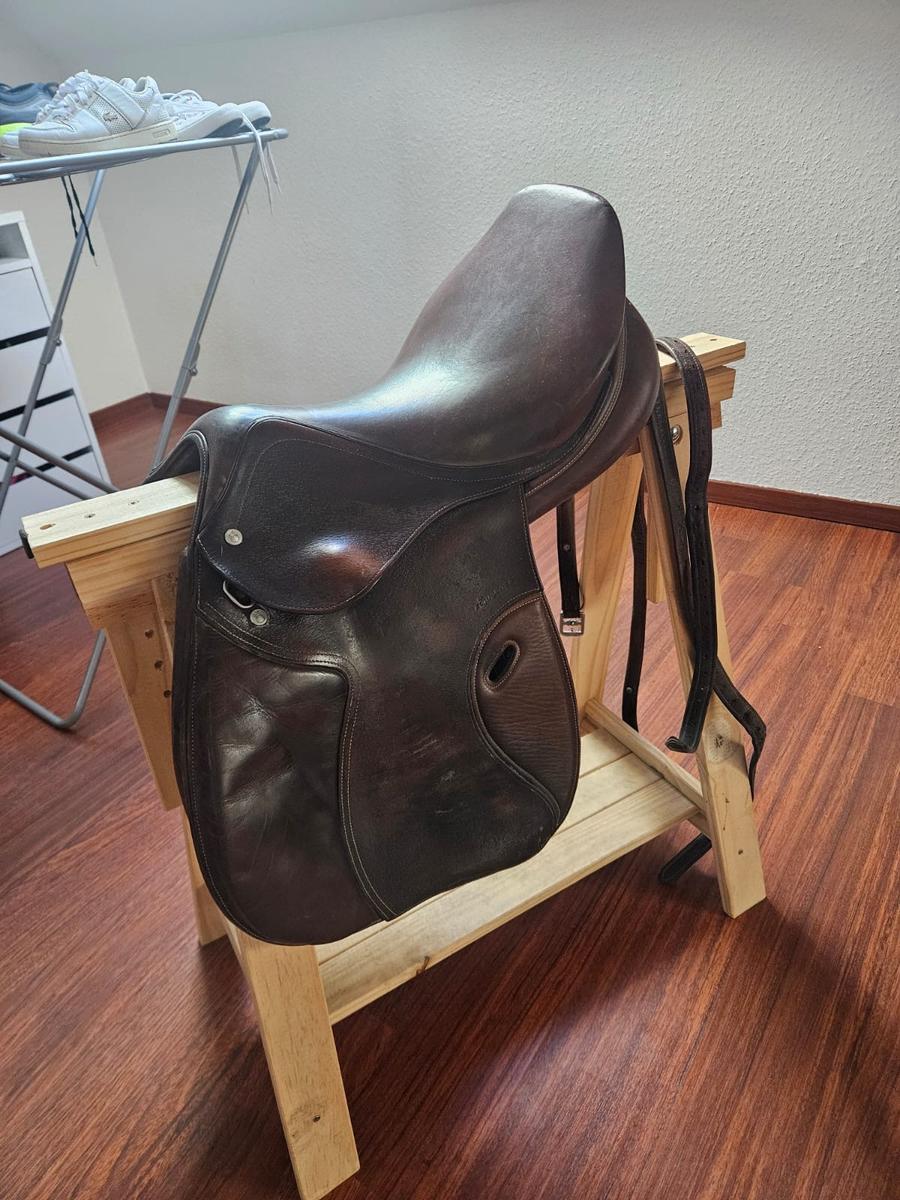Selle d’équitation de la marque Fouganza en full cuir en très bon état et très confortable ! A servis 2 ans et porte des traces d’usure du au temps. N’a connu aucune chute.