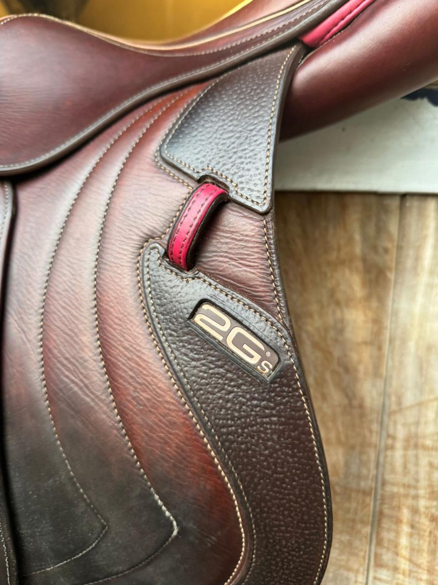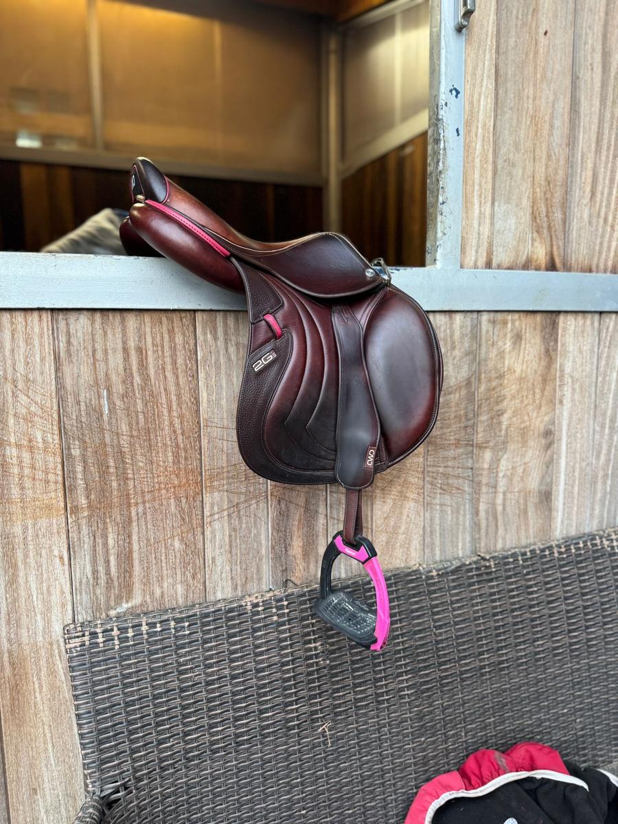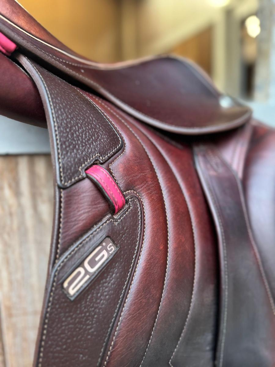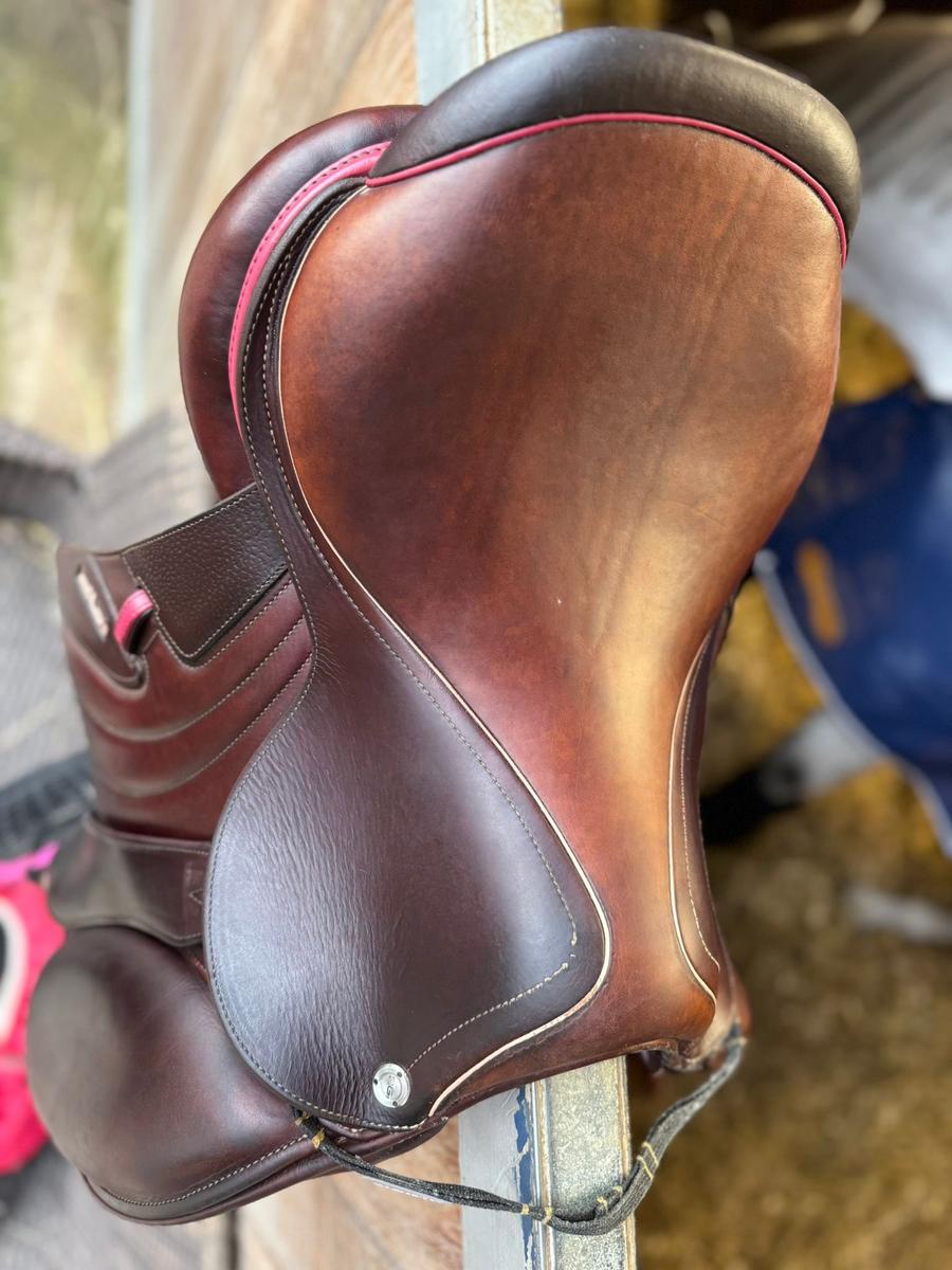 A vendre Selle CWD Mademoiselle 2GS, Taille 16,5, référence SE32096594, couleur des liserets rose. Peut-être vendue avec les étrivières et les étriers
