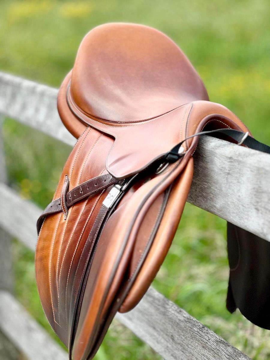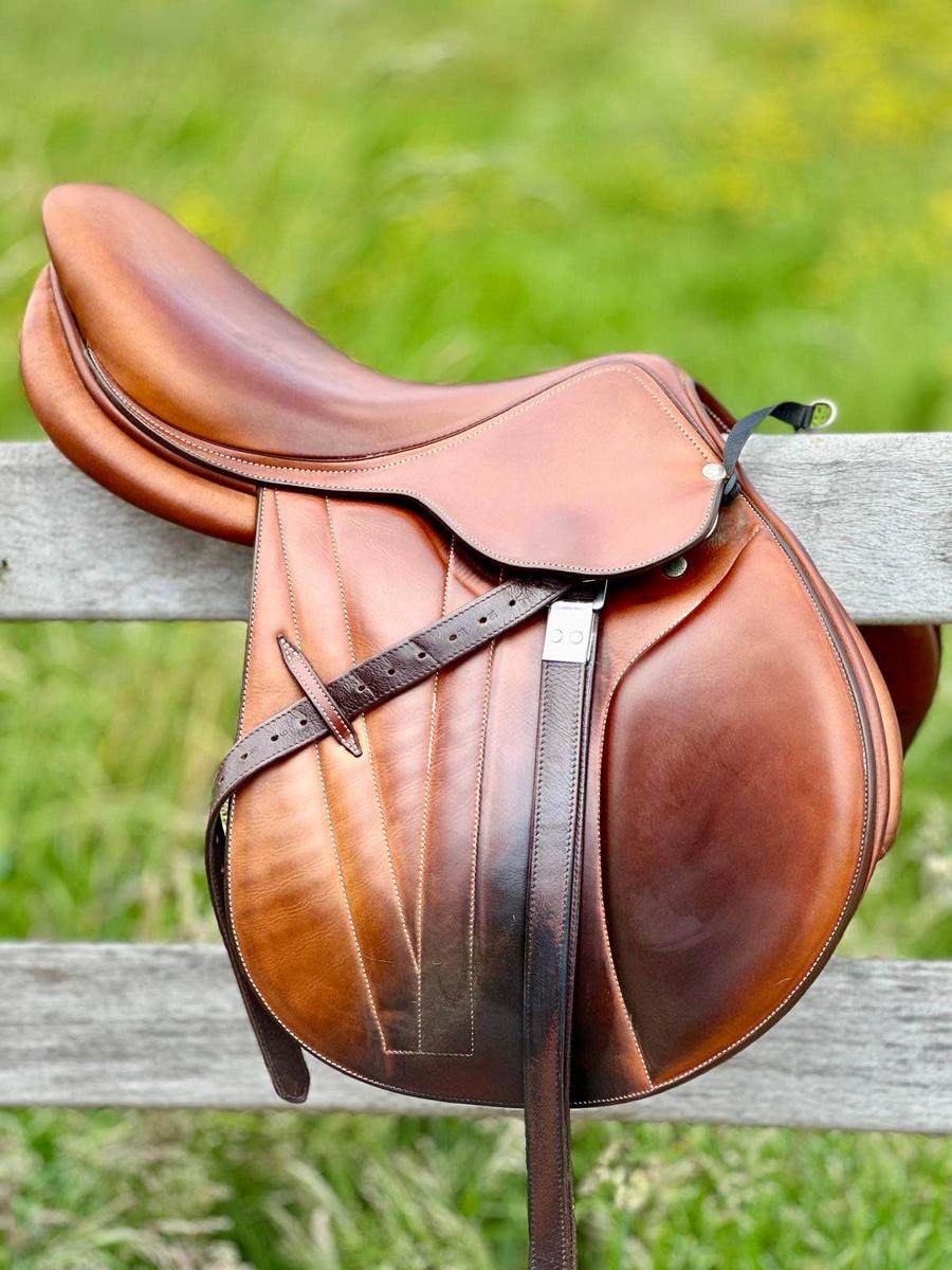 taille 17,5 très peu utilisée, année de 2023, aucun coup ni griffe, modèle obstacle, vendue avec les étrivières sans étriers.