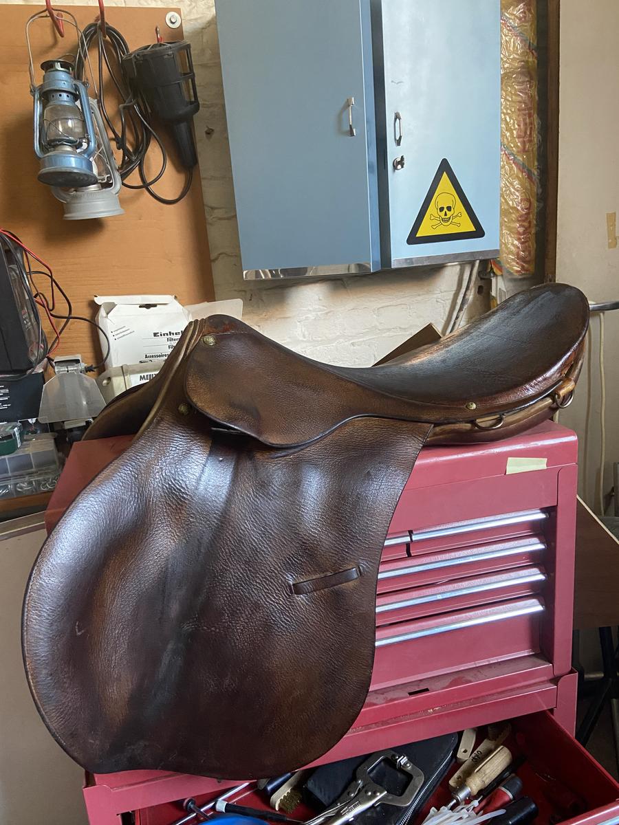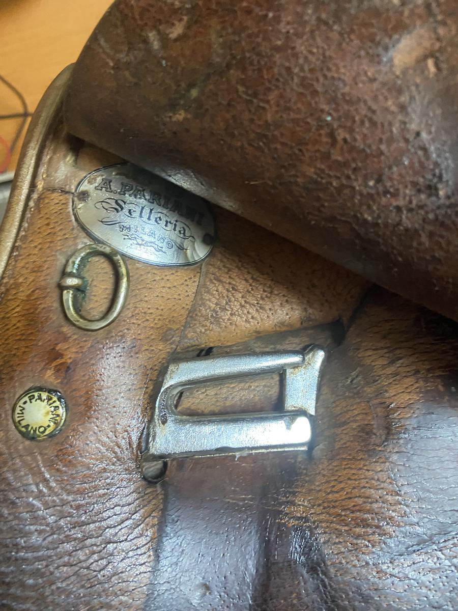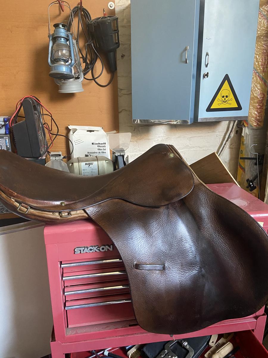 Selle Pariani, havane, 18", quelques traces d'usure mais 100% utilisable. Prix négociable dans la limite du raisonnable.