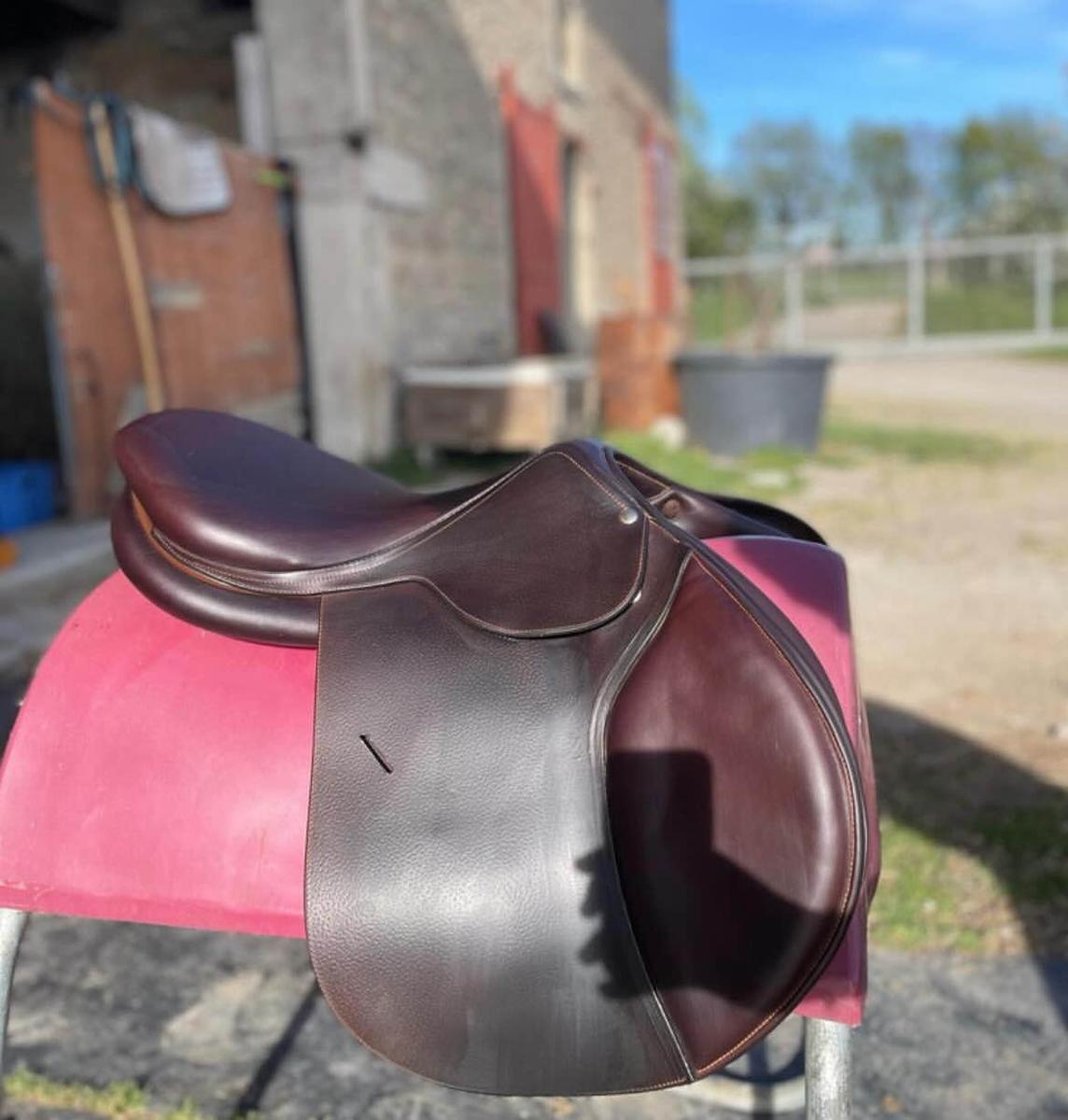 Selle d'obstacle Marque : Butet Modèle : Plate Matériel : Cuir Année : 2024 Taille : 17.5 pouces Couleur : Marron Etat : Occasion Première main : Oui Facture disponible : Oui Vendue avec housse : Oui Vendue nue ou équipée : Equipée Vendue avec : + Sangle + Etrivières Largeur de l'arçon : 00 cm Taille des quartiers : 00 Type de siège : Plat Référence : 941048