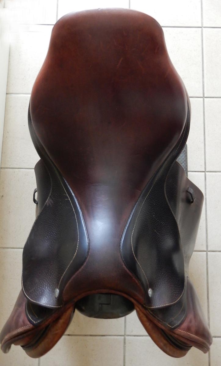 Utilisée sur un seul cheval, 2 à 3 heures par semaine, n'a jamais été sous la pluie, entretenue et graissée régulièrement, stockée dans une armoire fermée, sous sa housse et à l'abri de la lumière et de l'humidité
