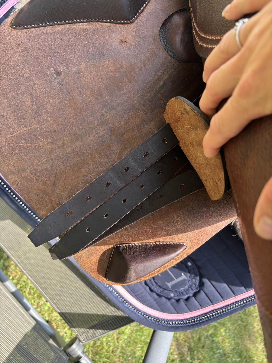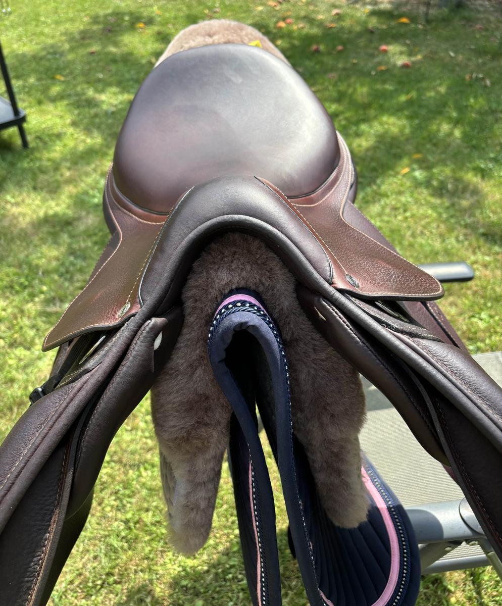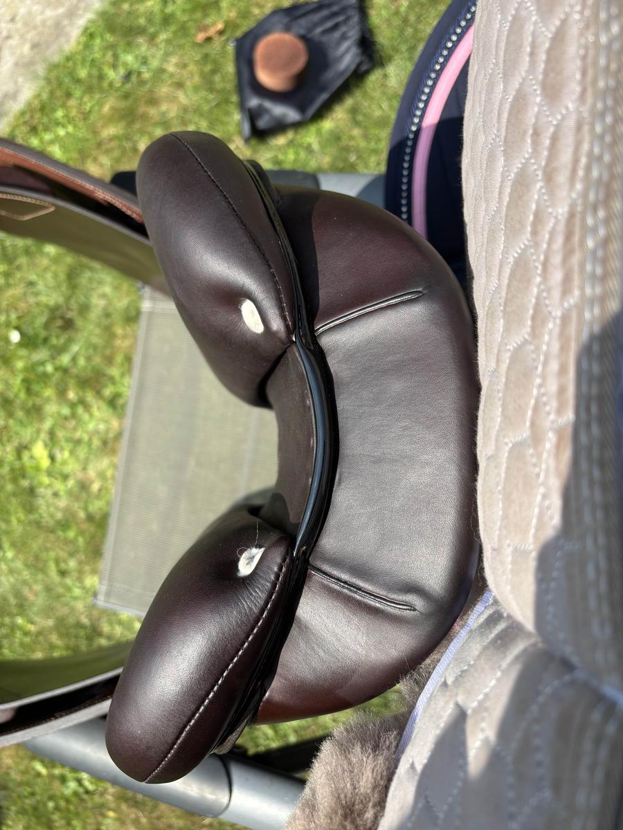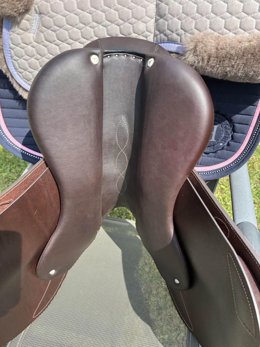 selle Antares connexion de novembre 2024 servie moins de 10 fois comme neuve. quartier doublée veau. logo galuchat noir et liseré noir glossy. facture disponible encore garantie. panneaux standard qui libère les épaules. arcade normale 28,5 cm. quartier 2A taille 17.