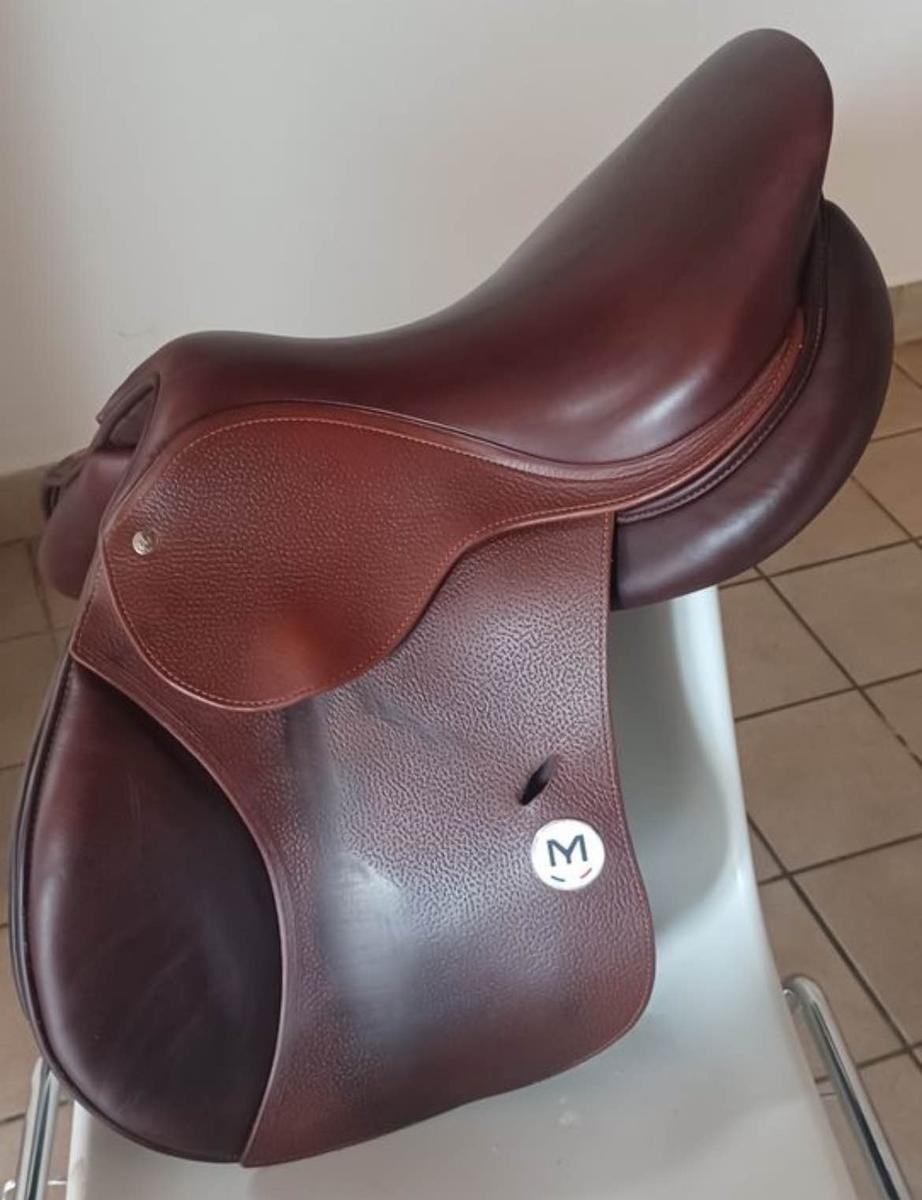 Selle Meyer acte 1 siège Marianne, état proche du neuf , très peu servi suite à l’arrêt de la discipline, taille 17, permet aux cavaliers d’engager le bassin et favorise l’équilibre , adapté à la plupart des chevaux