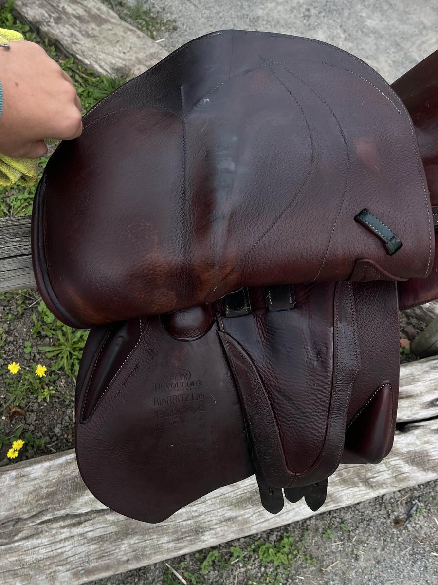 selle devoucoux Biarritz lab 2019 17 2A très bon état cf photos vendue avec housse légèrement négociable dans la limite du raisonnable merci de me contacter au 06/11/58/27/82