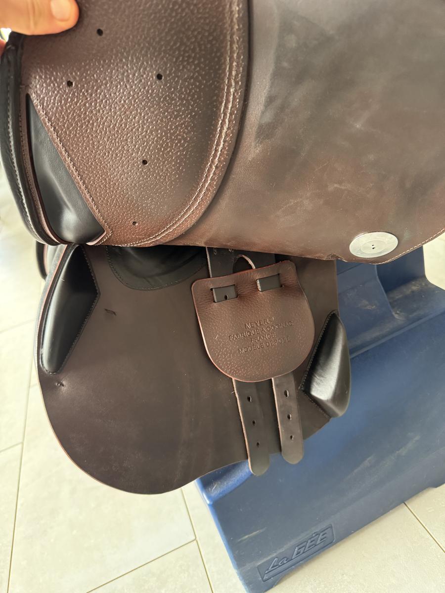 Siège taille 17, modèle Marianne. La selle ne convient plus à la morphologie de mon poney, je dois donc m’en séparer. La selle est en très bon état, sera révisée par les ateliers Meyer avant vente. Elle a toujours été entretenue avec les produits de la marque Meyer