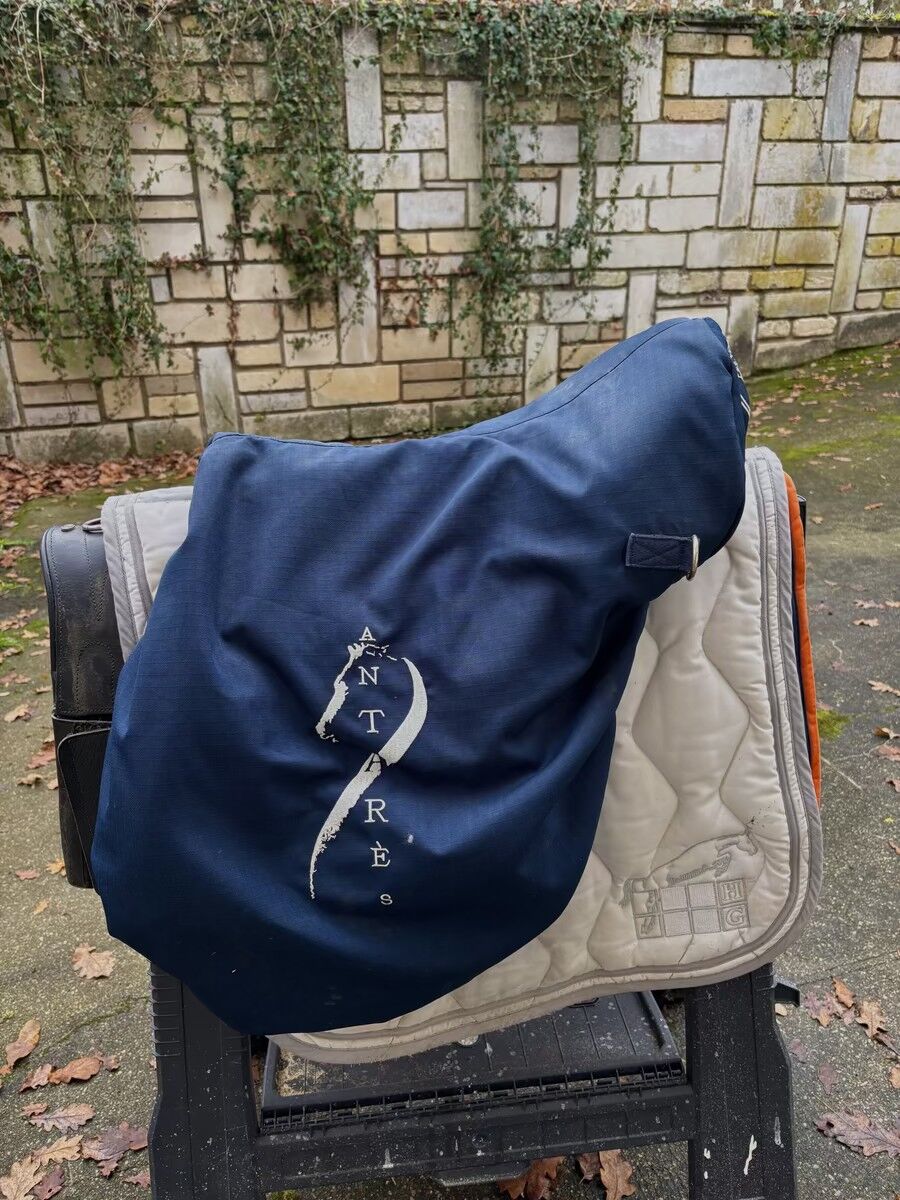 Selle de saut d’obstacle Jean Luc Maurel, en cuir noir, très confortable et bien entretenue