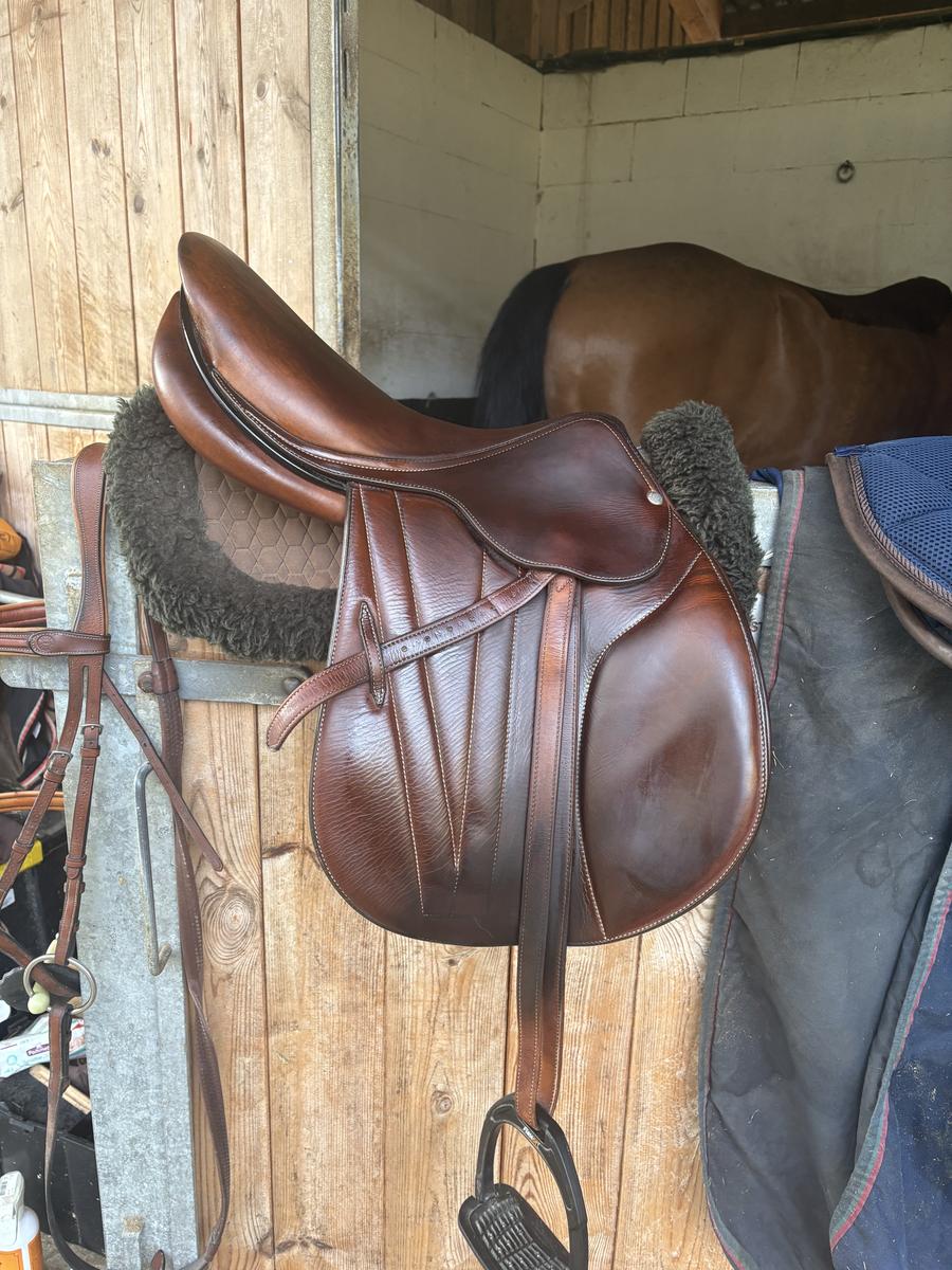 Selle semi-plate coloris gold doublée veau. Taille 17,5 achetée neuve en 2023.