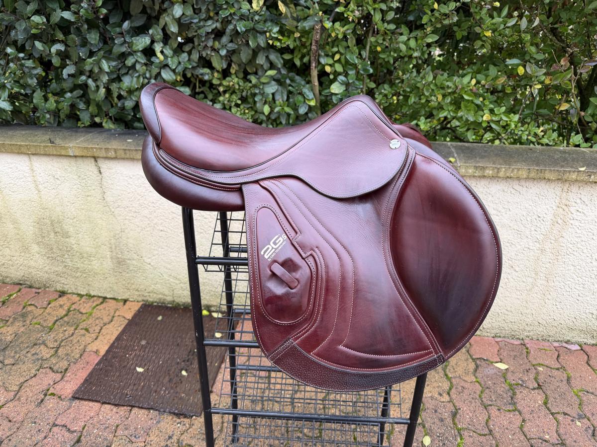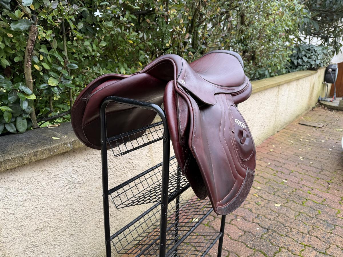 Selle haut de gamme, très confortable et technique, offrant une excellente proximité avec le cheval grâce au doublé veau.