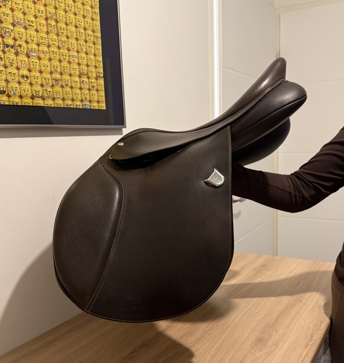 Elle n’a servi que 5 fois, mon cheval n’étant finalement pas monté. La selle est donc en excellent état.