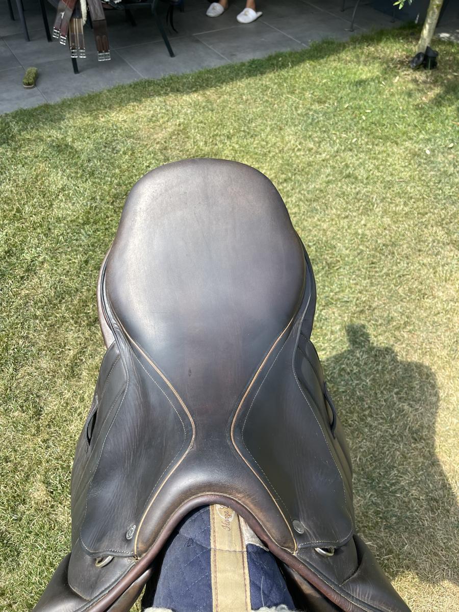 À vendre : selle Colbert Brothers en cuir couleur acajou, datant de 2015, taille 17,5 pouces, en bon état, confortable et bien entretenue.