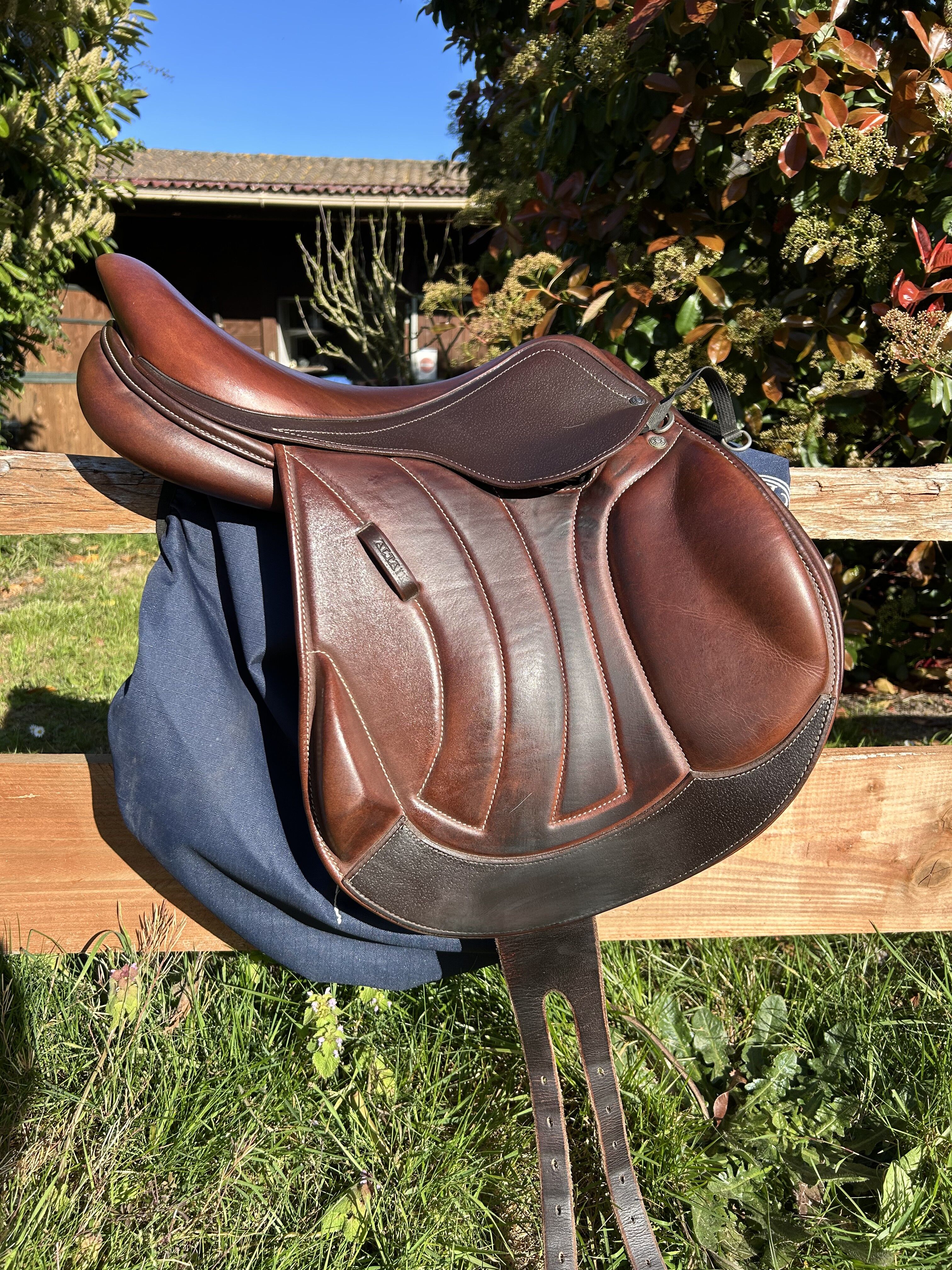 Bonjour, je vends ma selle Altair monoquartier marque Antares, en très bon état, soigneusement entretenue. ✨ Détails de la selle : • Modèle : Altair monoquartier, 2023 • Taille du siège : 17,5 pouces • Discipline : saut d’obstacle 📦 Vendue avec : ✔️ Selle Antarès Altair monoquartier ✔️ Housse Antarès ✔️ Sangle bavette (60 cm) ✔️ Tapis Antarès (possible de le rajouter) 🧼 Selle et accessoires en très bon état, entretien régulier, stockée à l’abri. Léger accro sur le devant du pommeau. 💰...
