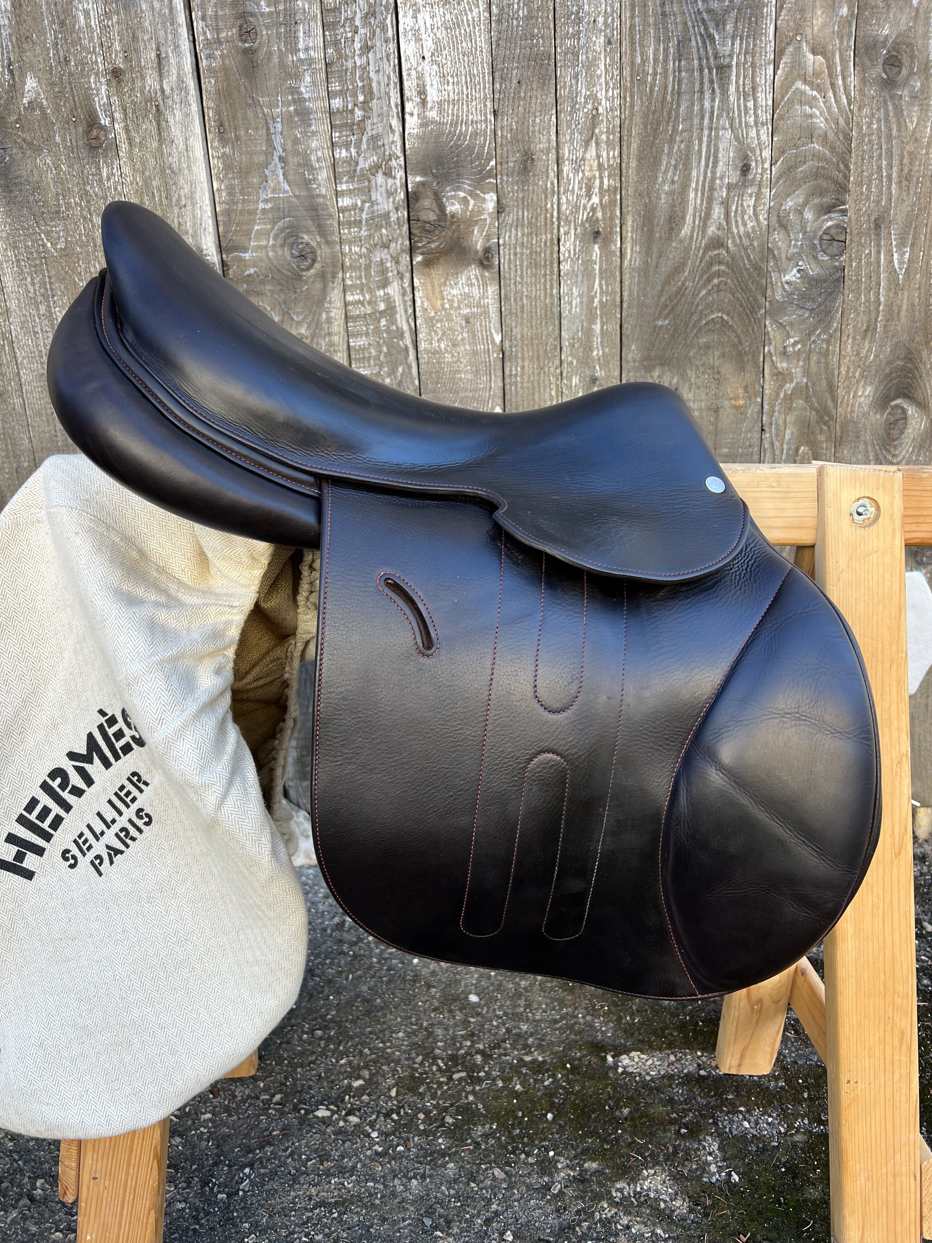 Selle Hermès Cavalle II Taille 17,5 Cuir Havane & fil Rubis Nov2020 peu servie