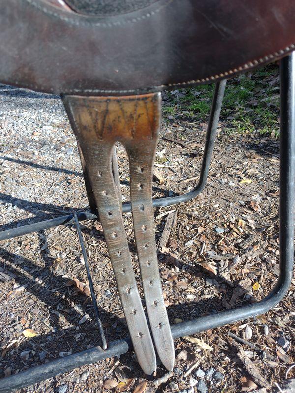 Tous les défauts sont visibles sur les photos. Pas de trou, déchirure, couture abîmée... Selle en état OK.