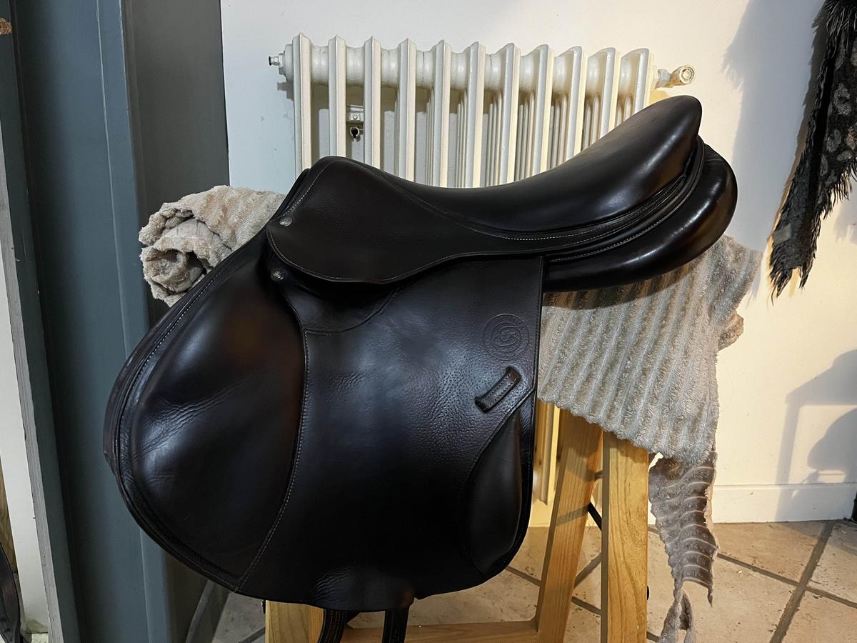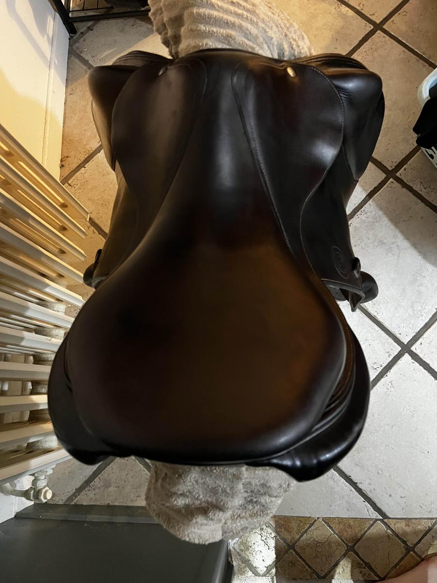 Tres confortable, taille 18, elle convient très bien pour un 17,5. Couleur havane. Plutôt orientée cross avec son siège plat mais je l’utilisais sur le cso et le plat aussi.