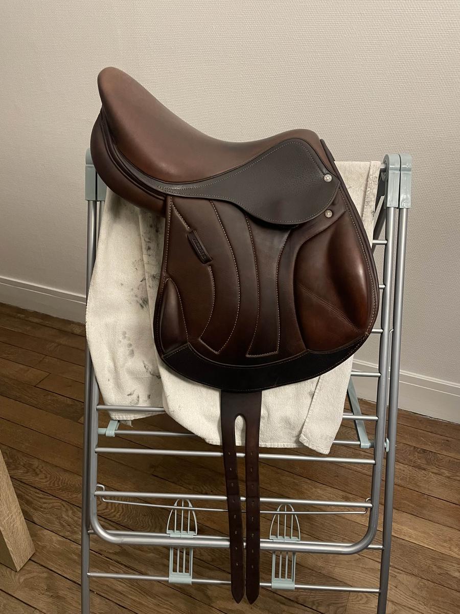 Quelques petits accrocs car elle n’a pas été stockée de manière optimale pendant mon absence, mais très peu visibles et n’impactent en rien l’utilisation de la selle (dernières photos).